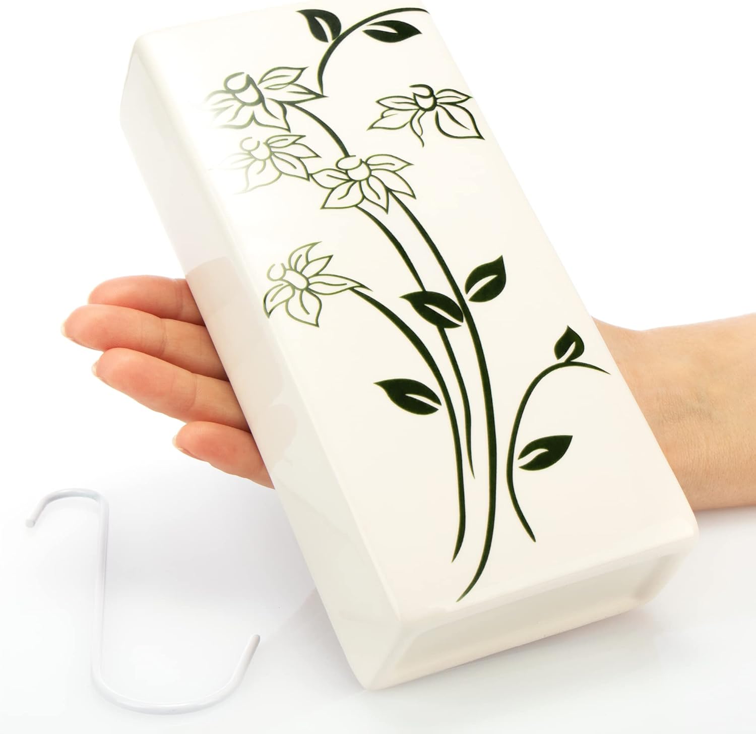 • Съдържание на опаковката: 3 x овлажнителя, 3 x S-образни куки. Материал: керамика, метал. Размери: 20 x 10 x 4 см. Дизайн: цветни пипала, цветя, абстрактен (изборът на мотив варира в зависимост от наличността)