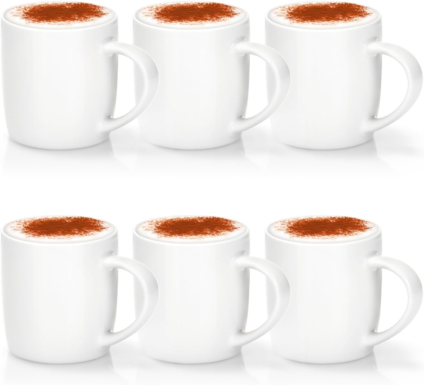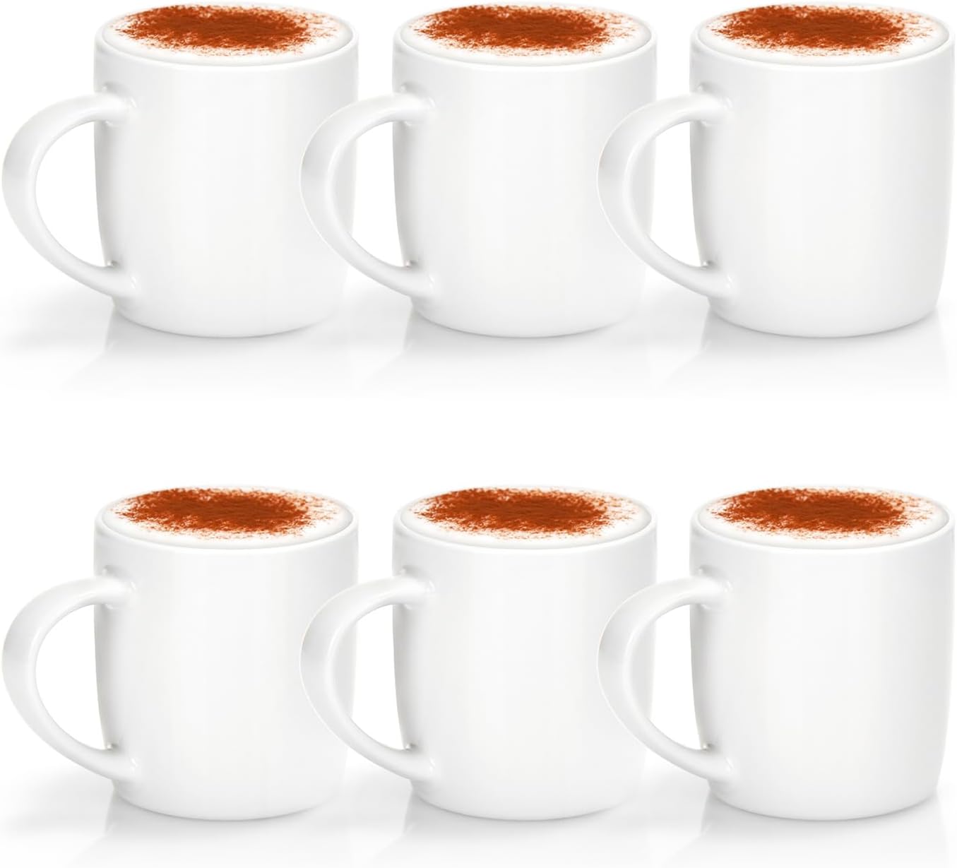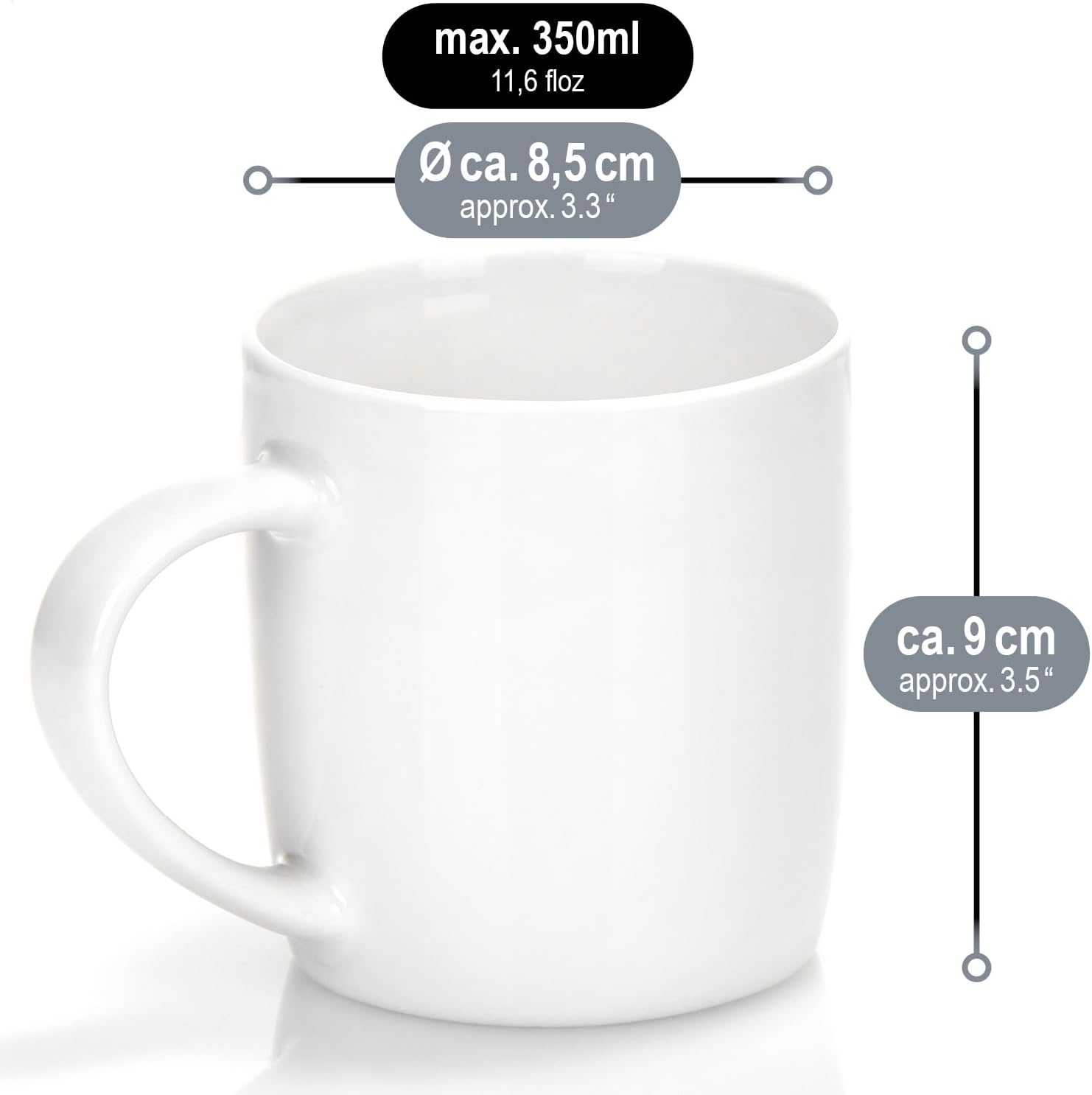 com-four® 6 порцеланови чаши за кафе - Модерен дизайн на чаша за кафе - Основен бял каничка за топли и студени напитки - 330 мл