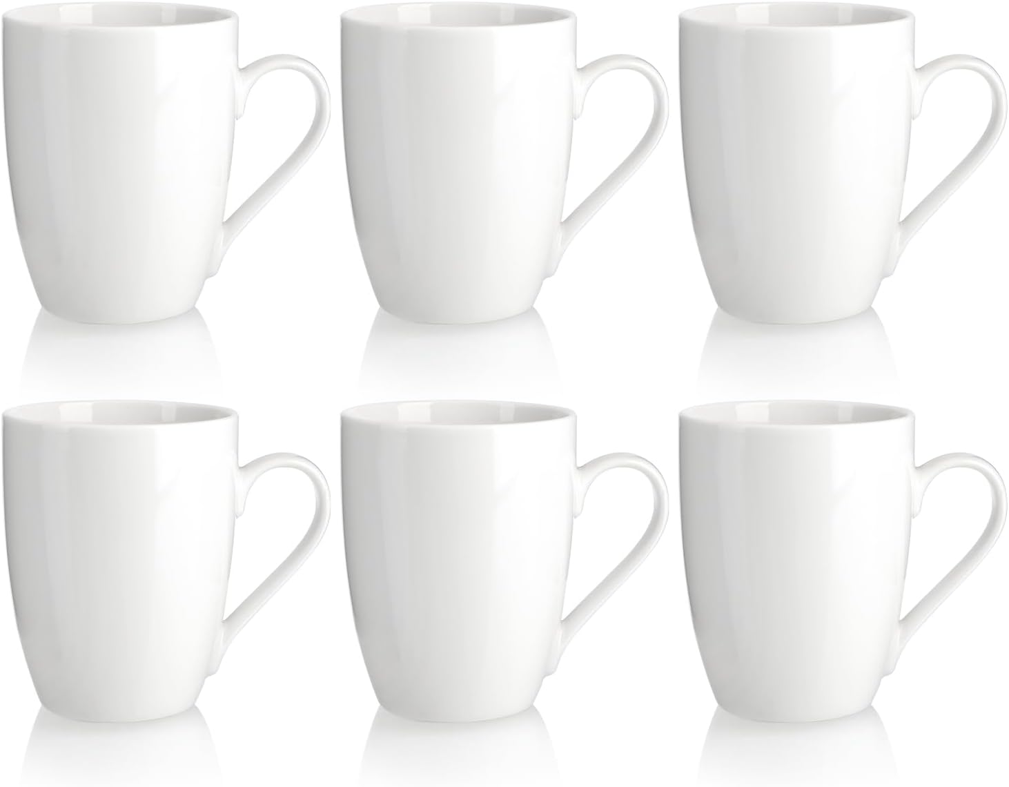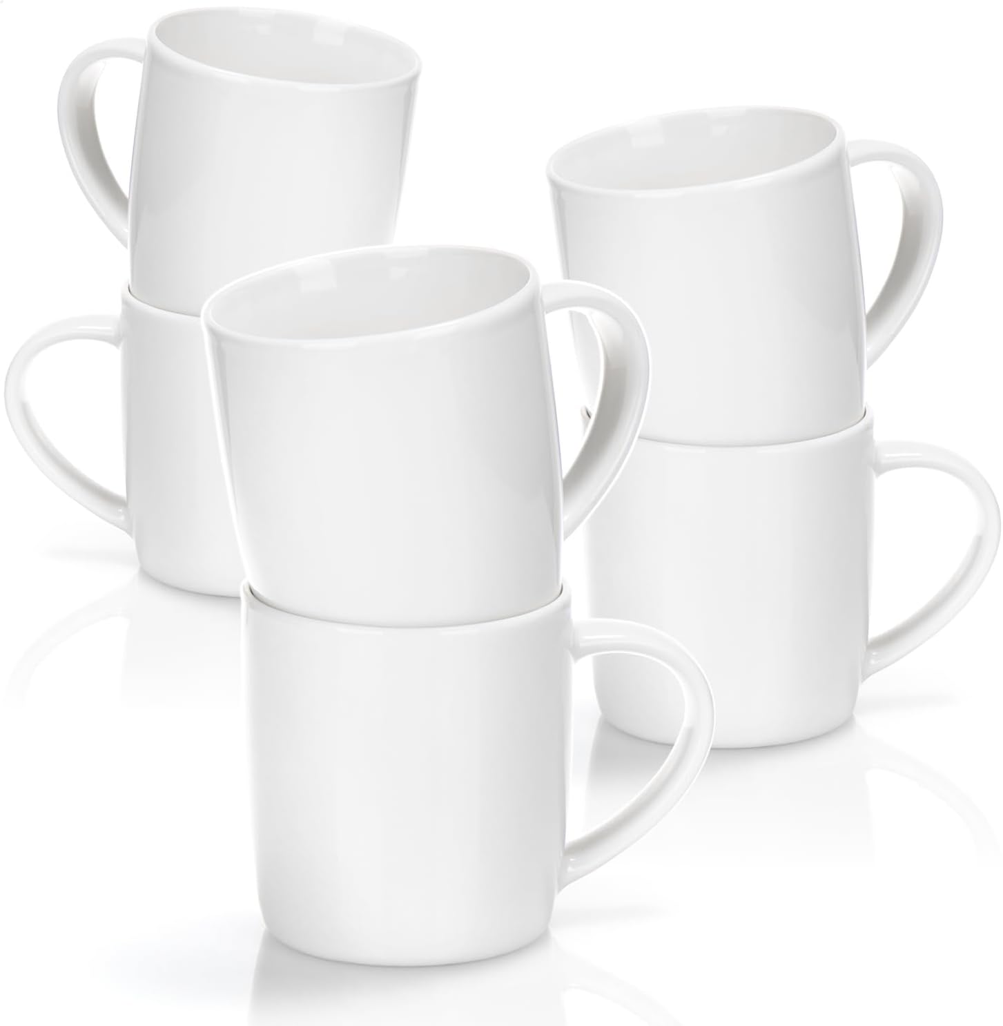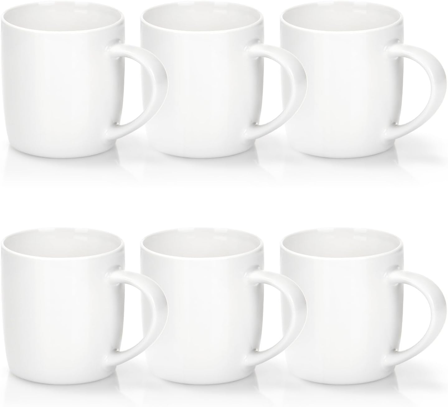com-four® 6 порцеланови чаши за кафе - Модерен дизайн на чаша за кафе - Основен бял каничка за топли и студени напитки - 330 мл