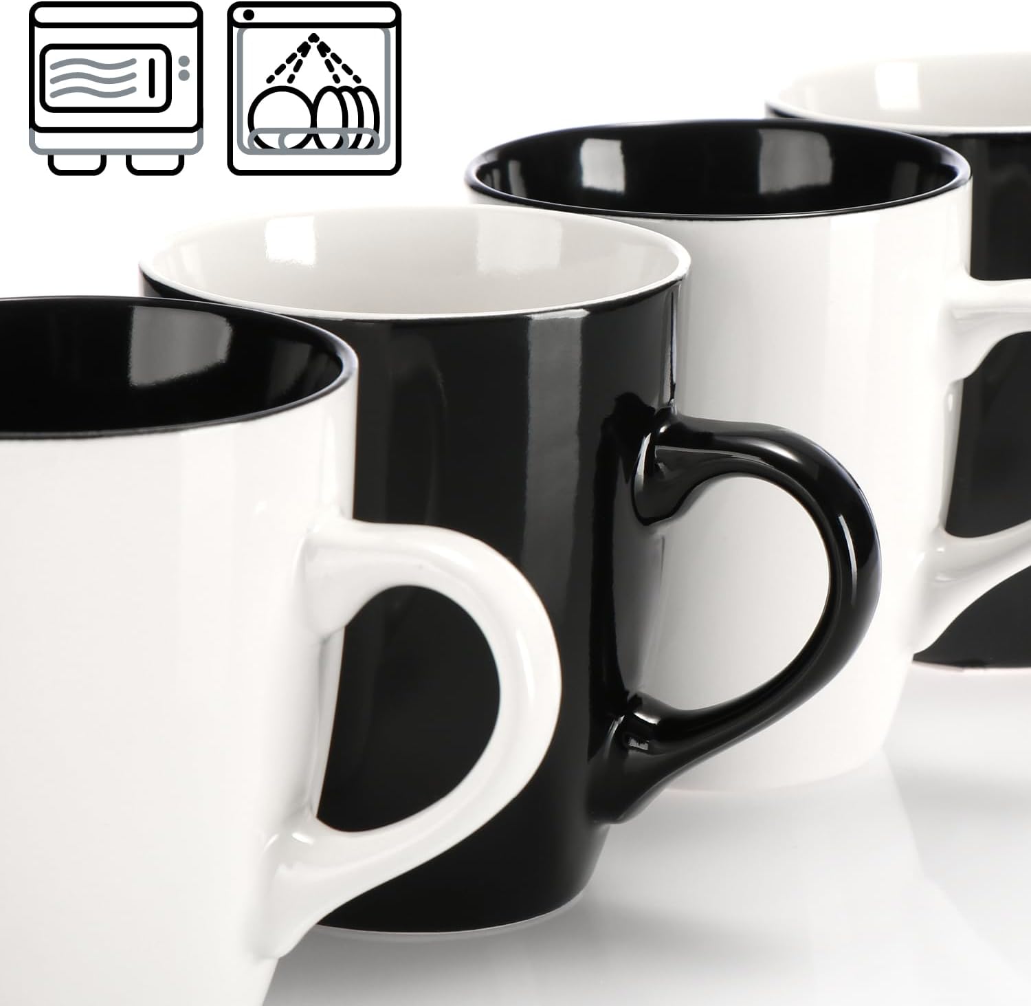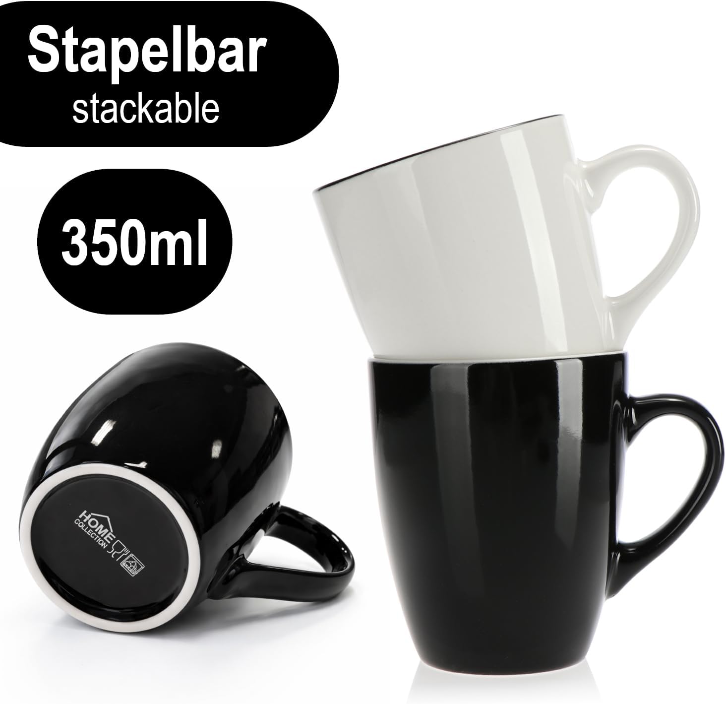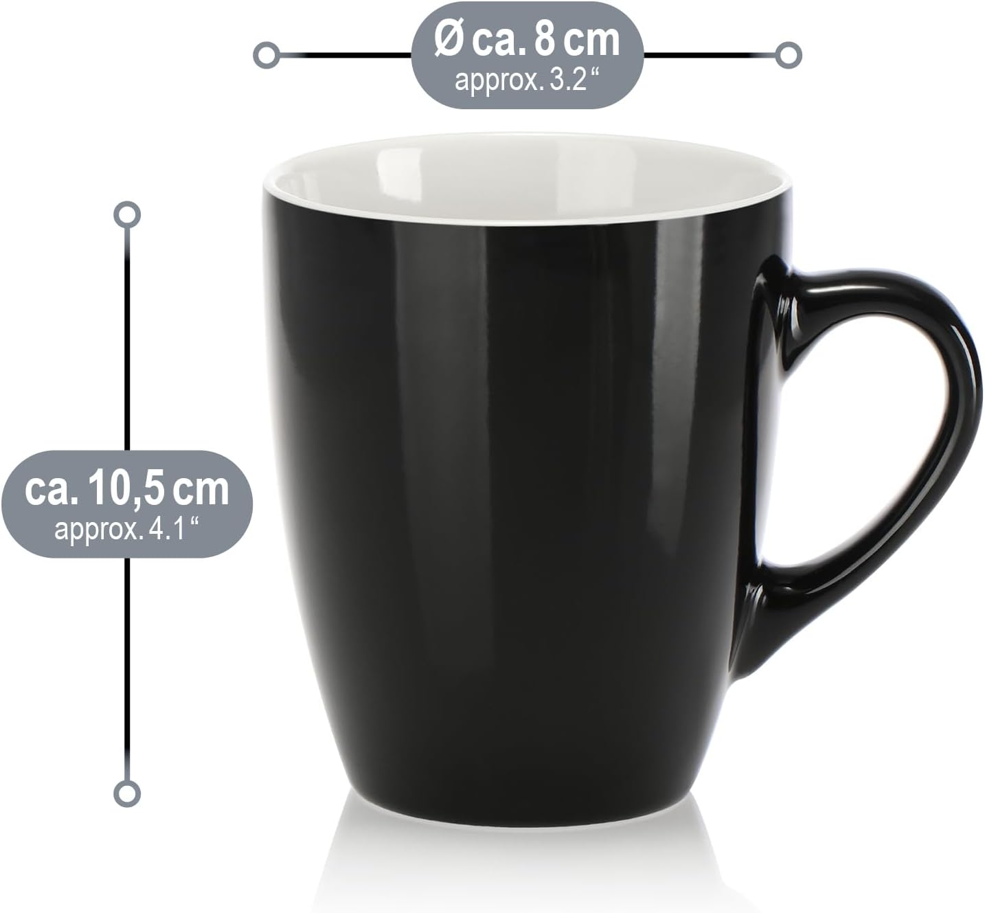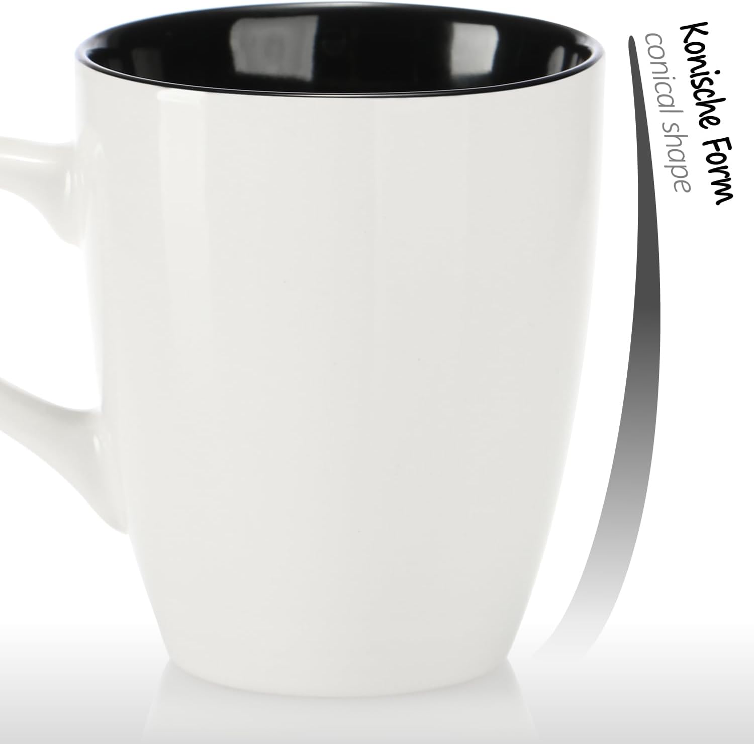 com-four® 6x Керамични чаши за кафе - 350 мл чаши за кафе с модерен дизайн - Кафеник за топли и студени напитки - Черно-бяла чаша с дръжка - Чаша за пиене