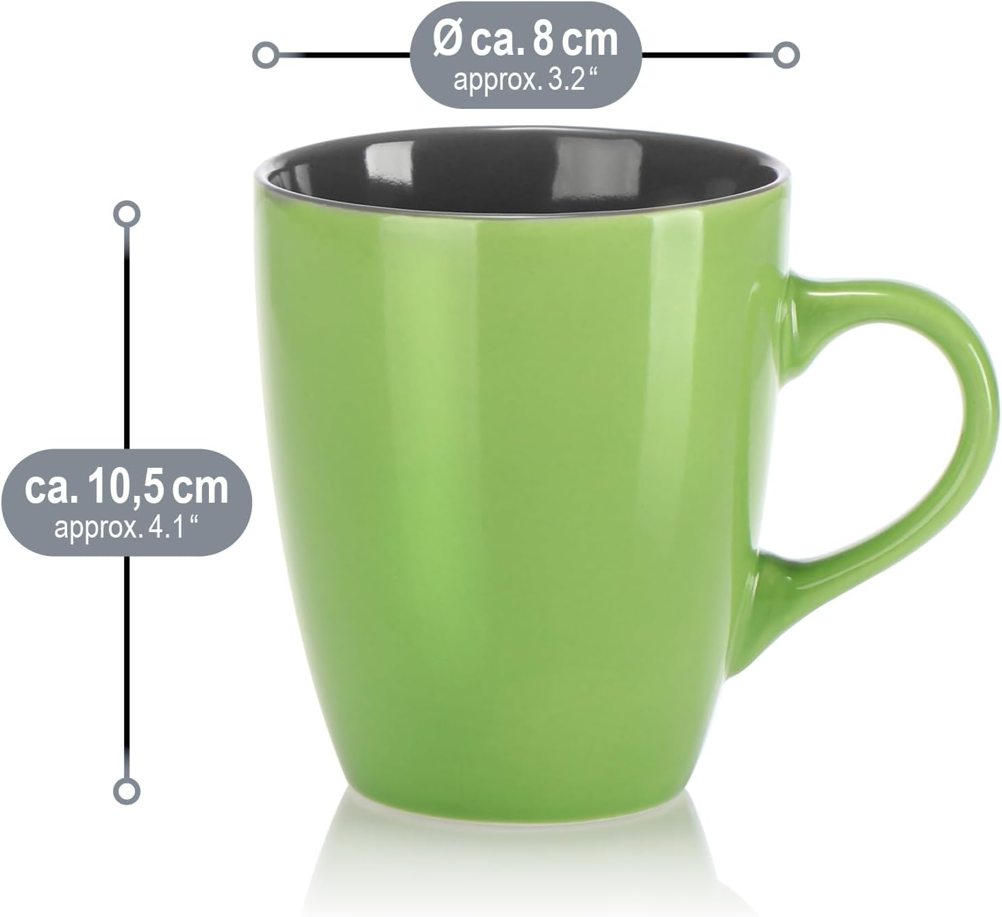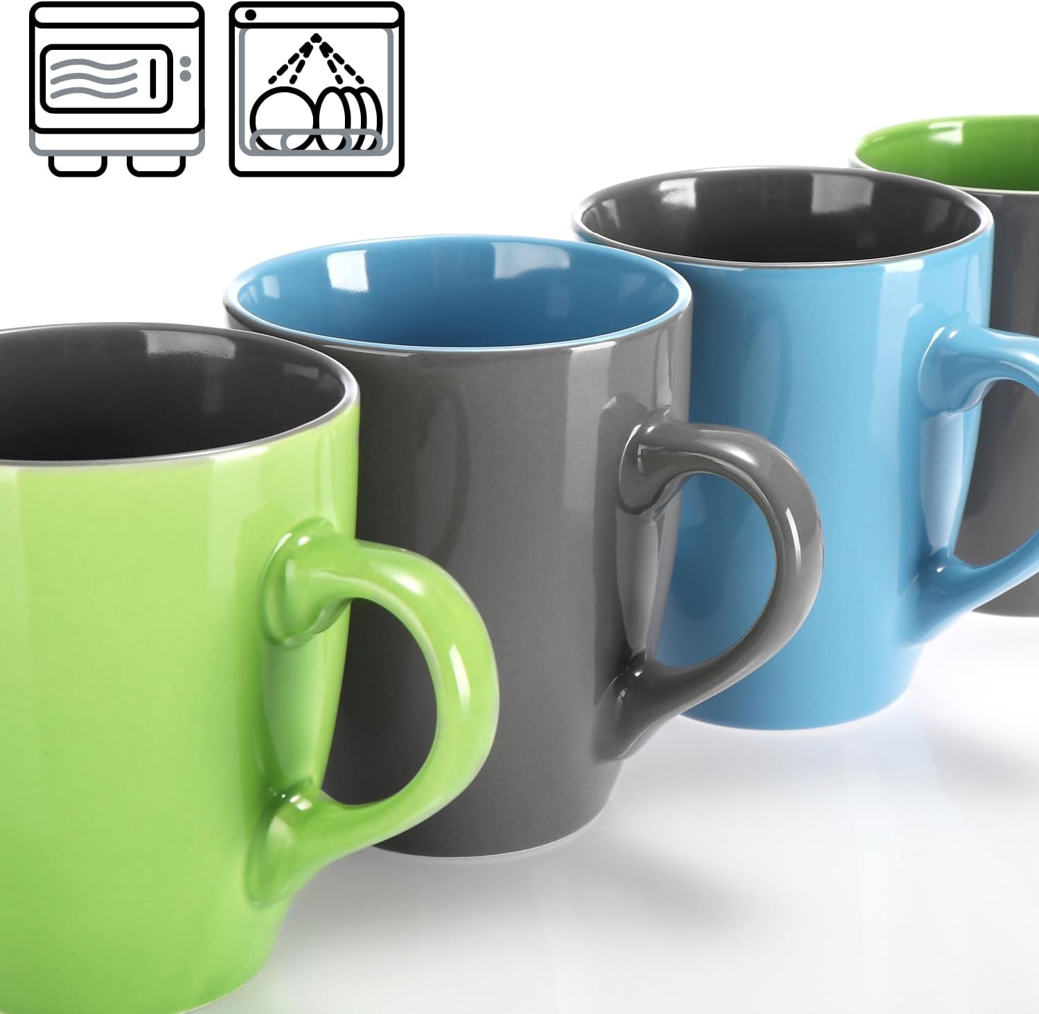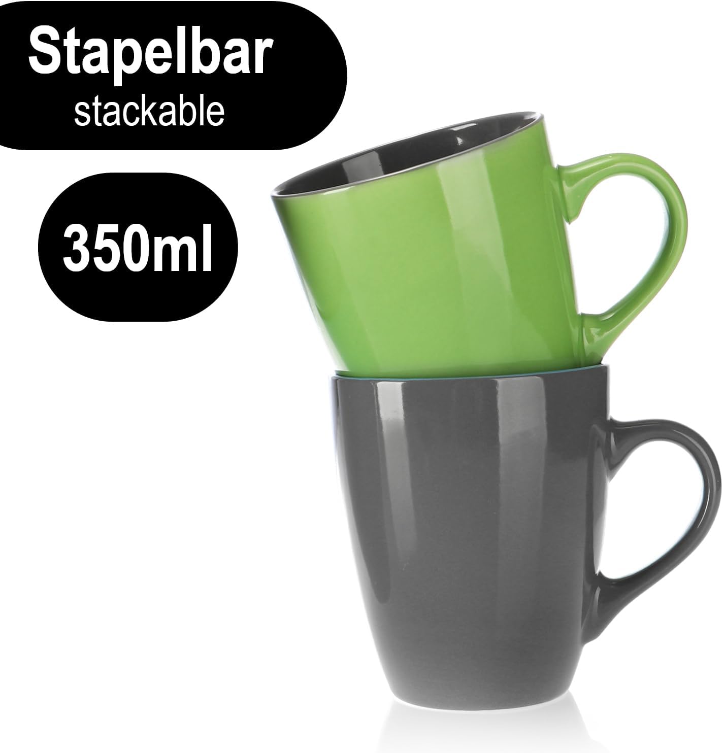 com-four® 6x Керамични чаши за кафе - 350 мл кафеник за топли и студени напитки - Чаши за кафе с модерен дизайн - Чаши с цветни дръжки - Чаши за пиене