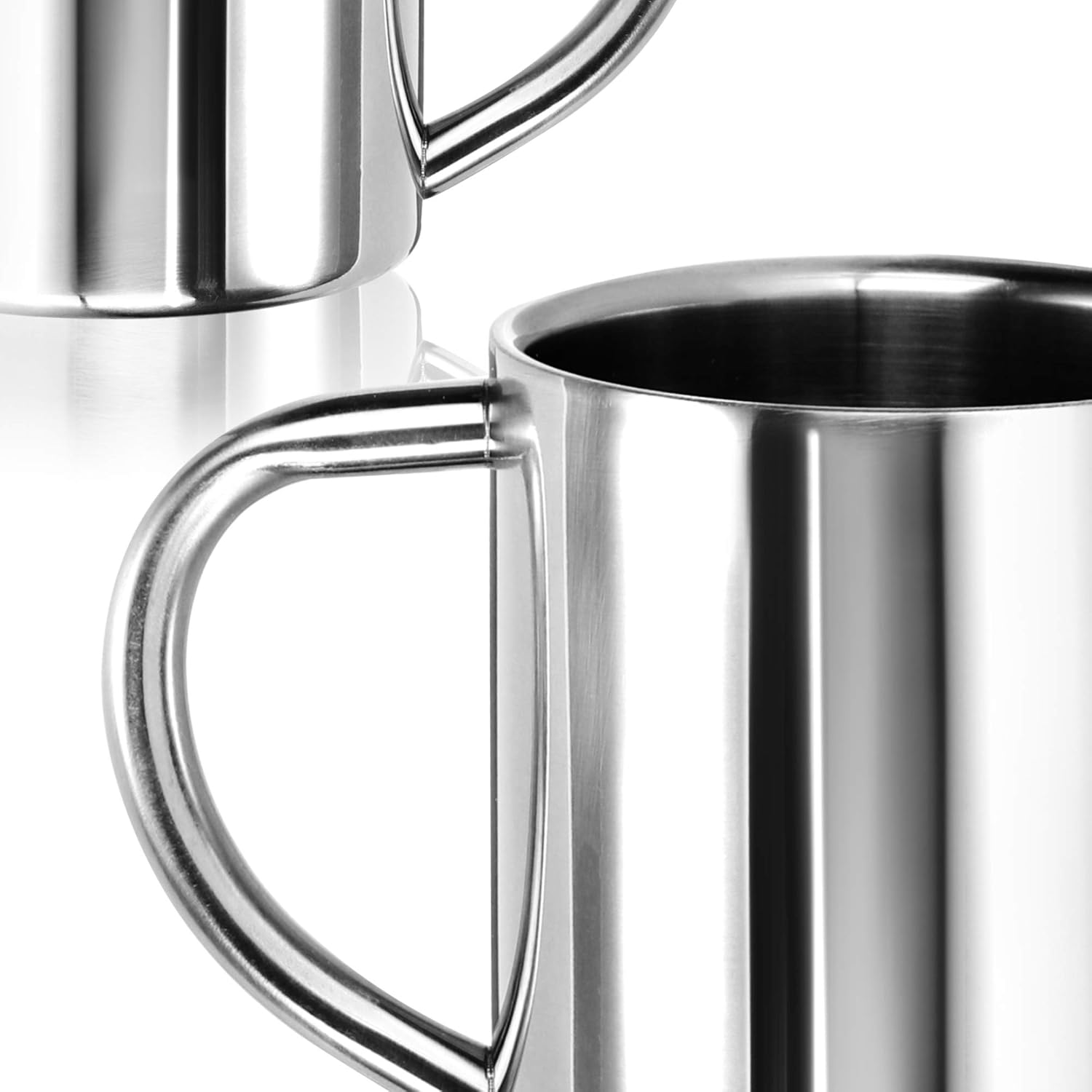 • Лесни за почистване и хигиенични. Здравите чаши за кафе от неръждаема стомана са лесни за почистване, тъй като са изработени от елегантна, силно полирана неръждаема стомана. Те могат да се изплакват бързо и лесно и са подходящи за миене в съдомиялна машина.