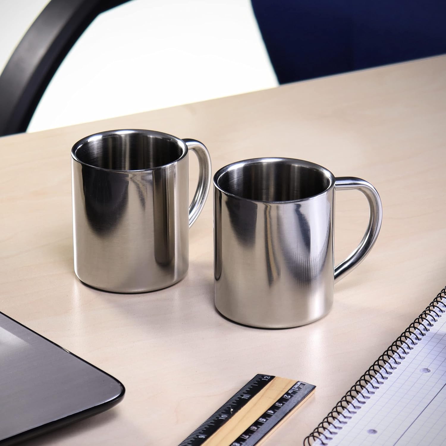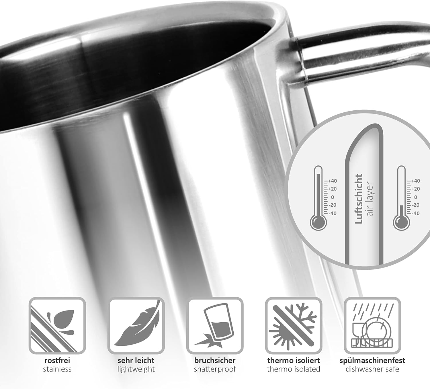 com-four® Чаша за кафе от неръждаема стомана, чаша за кафе, термо чаша за пиене, изработена от висококачествена неръждаема стомана, кана за кафе, нечуплива, двустенна изолирана чаша, без BPA (бисфенол-А), опаковка от 2 броя