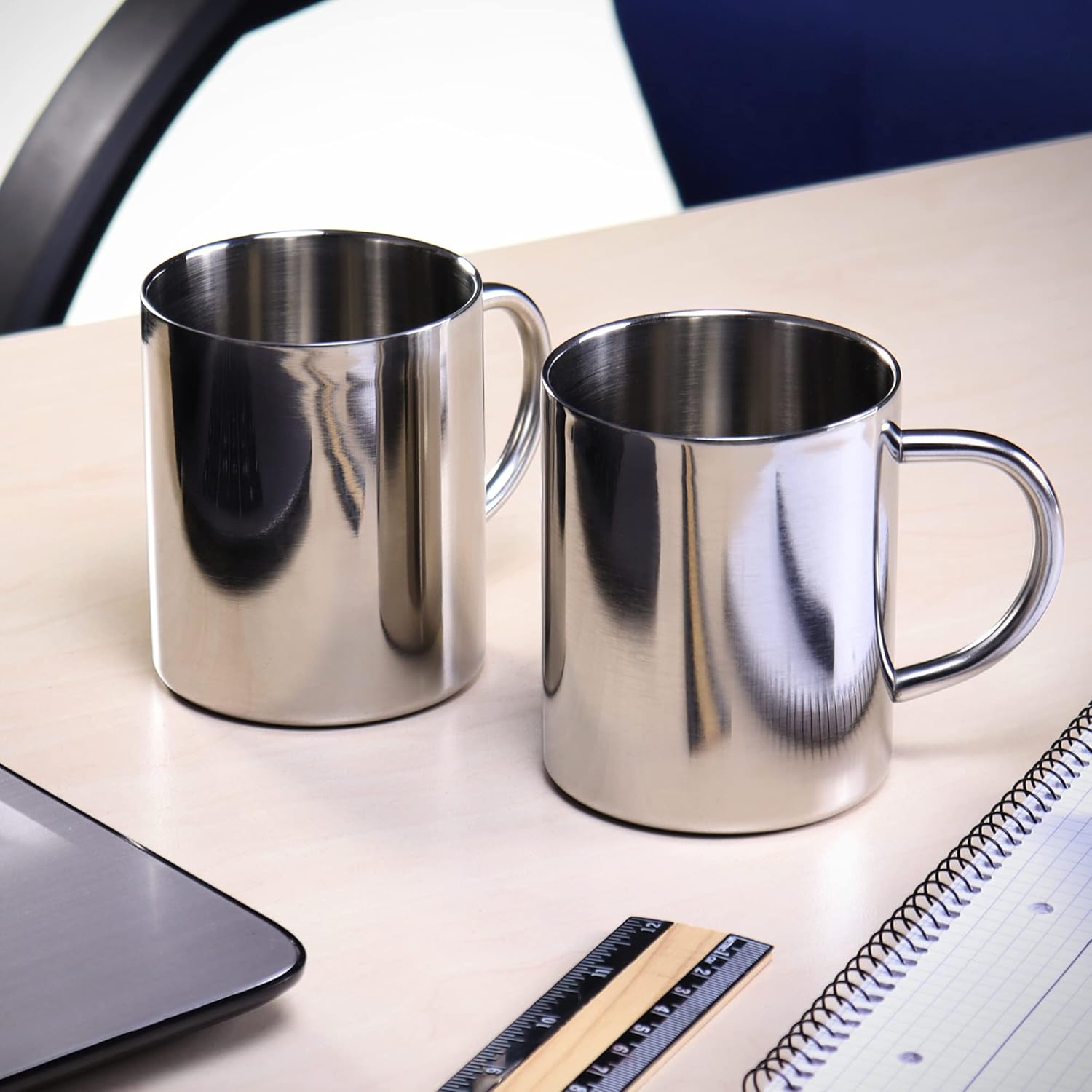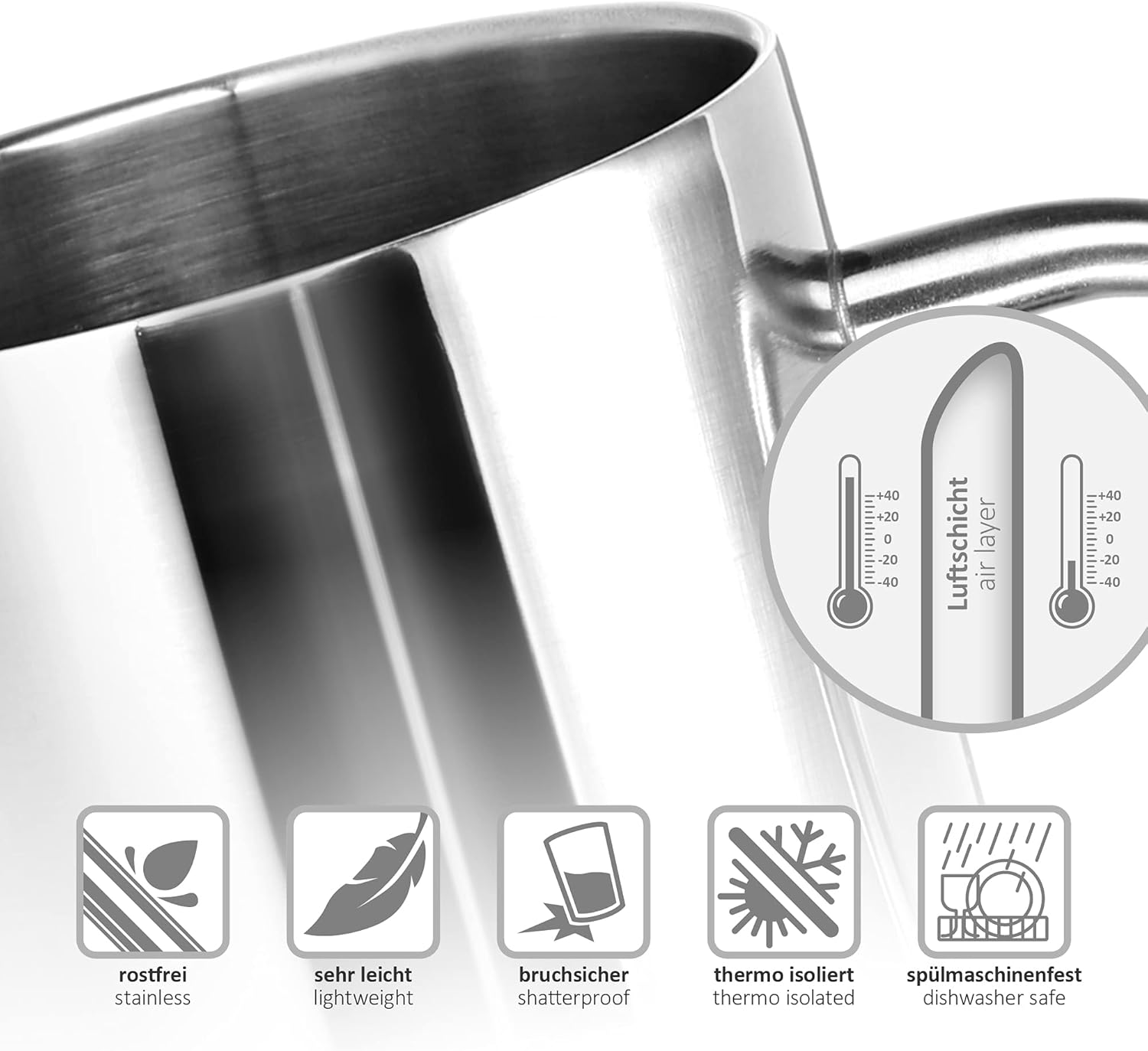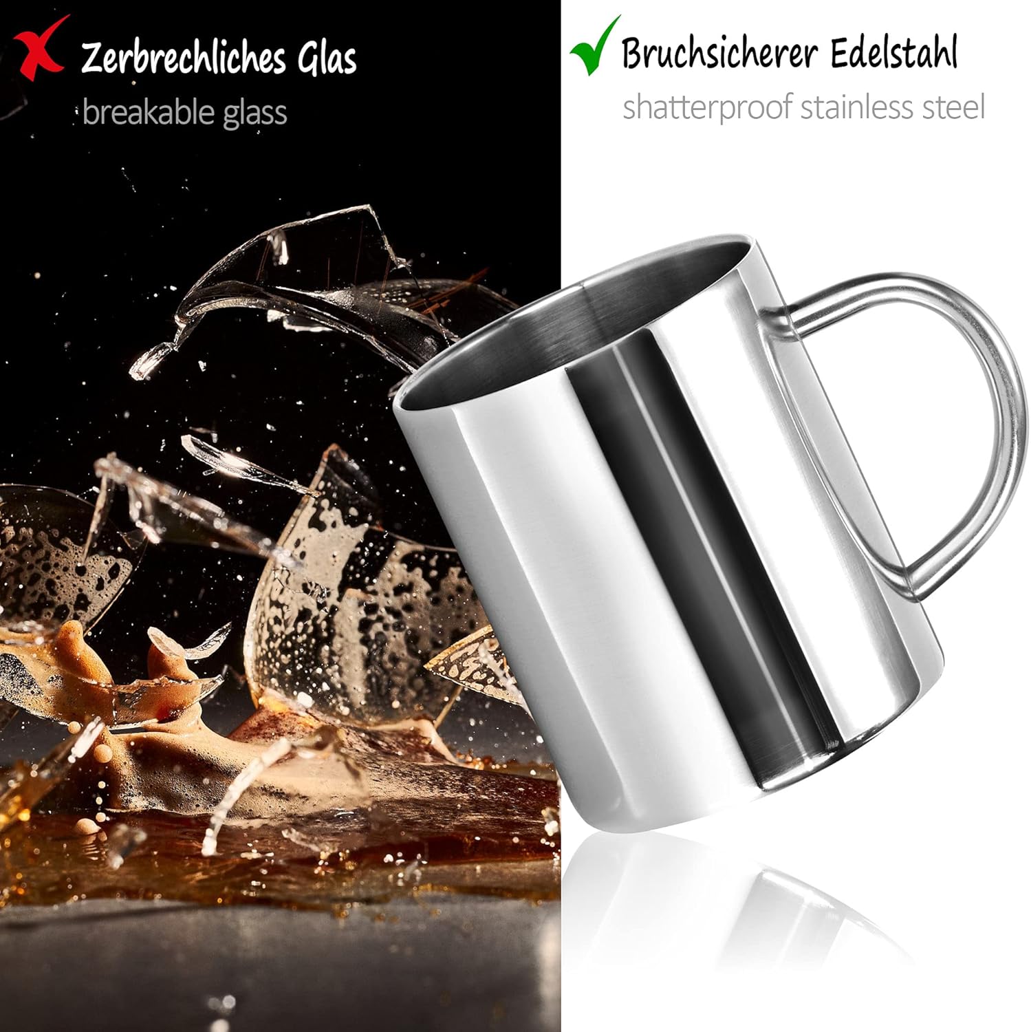 com-four® Чаша за кафе от неръждаема стомана, чаша за кафе, термо чаша за пиене, изработена от висококачествена неръждаема стомана, кана за кафе, нечуплива, двустенна изолирана чаша, без BPA (бисфенол-А), опаковка от 2 броя