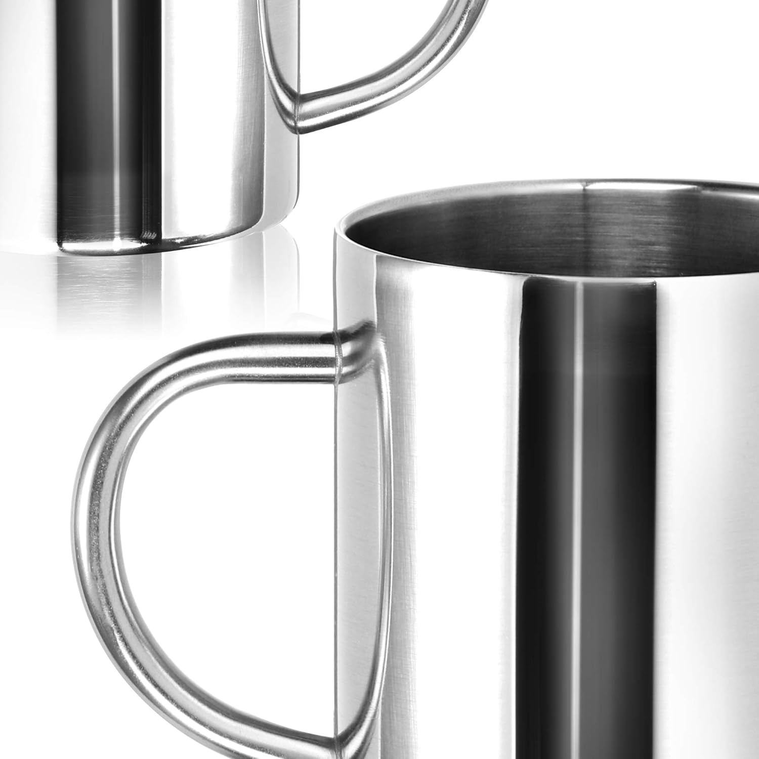 • Лесни за почистване и хигиенични. Здравите чаши за кафе от неръждаема стомана са лесни за почистване, тъй като са изработени от елегантна, силно полирана неръждаема стомана. Те могат да се изплакват бързо и лесно и са подходящи за миене в съдомиялна машина.