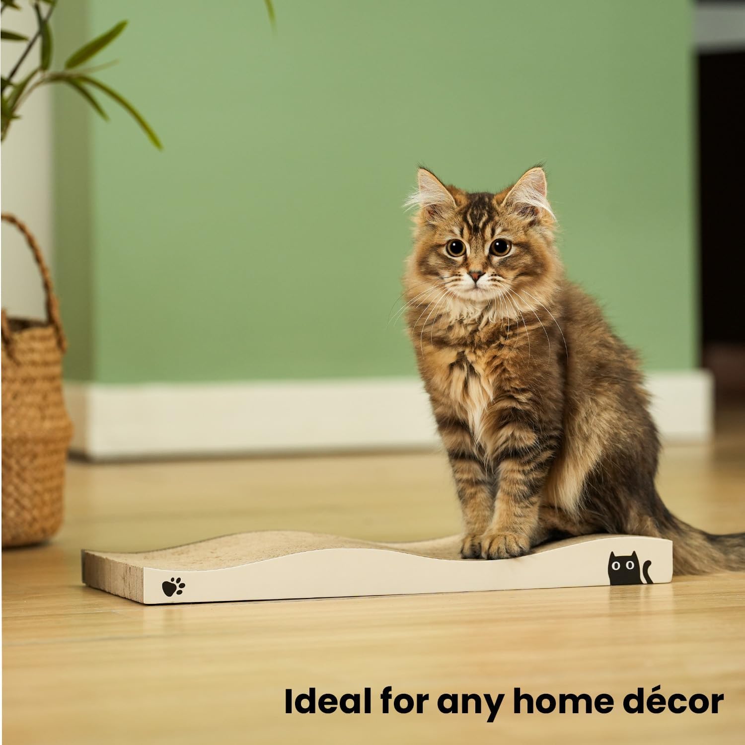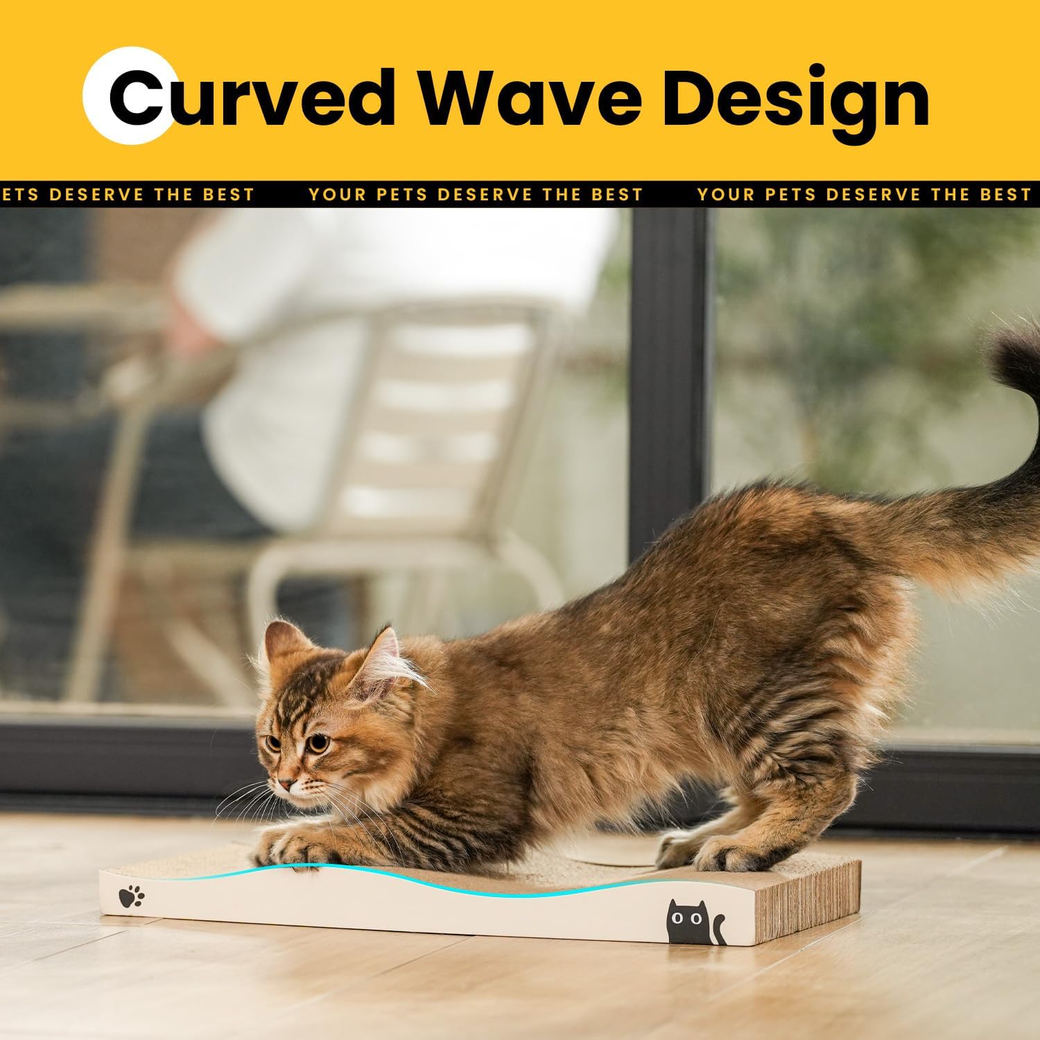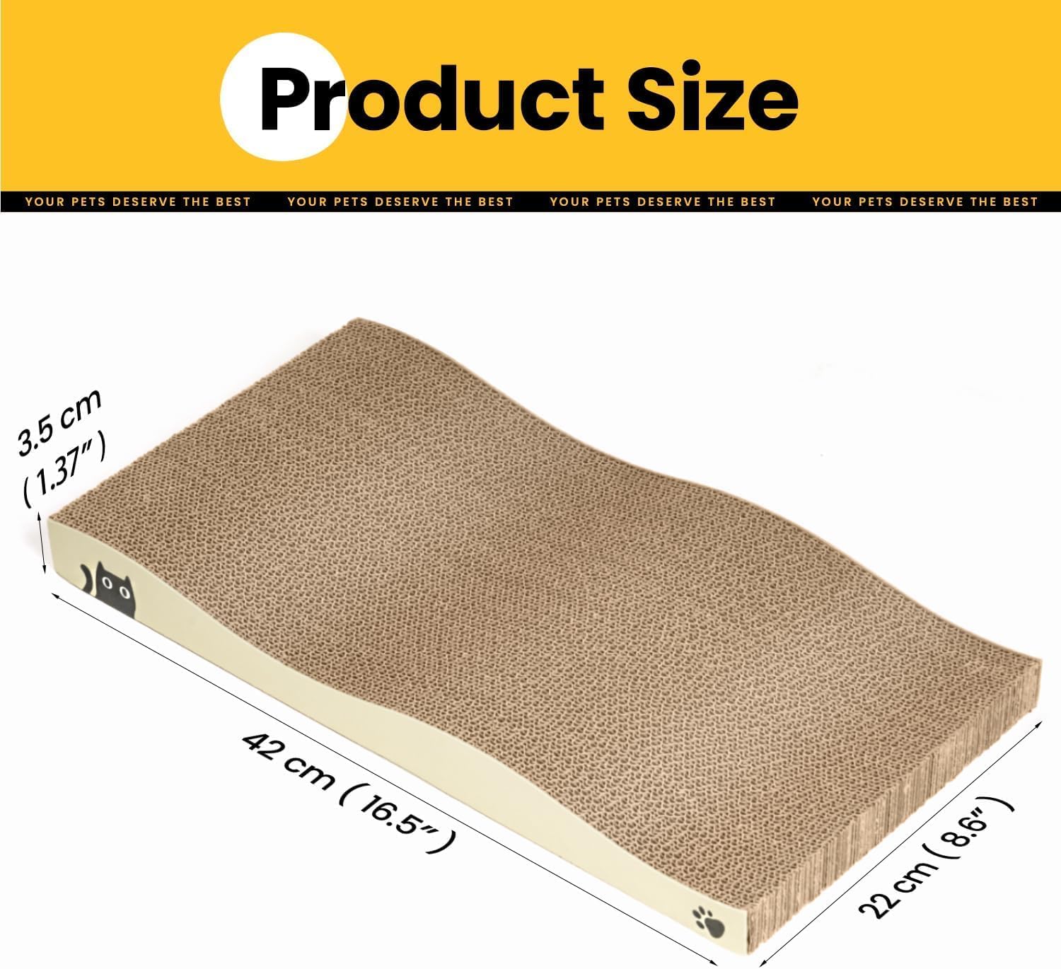 • УНИКАЛЕН ДИЗАЙН Висококачествена текстура за драскане, нашата подложка за драскане за котки имитира кората на дърветата още по-точно. Различните усещания при допир я правят неустоима за котките. Още по-важното при този дизайн е, че картонената подложка за драскане за котки е с 50% по-издръжлива от обикновените. Референтен размер: 40 x 20 x 5,3 см (Д x Ш x В)