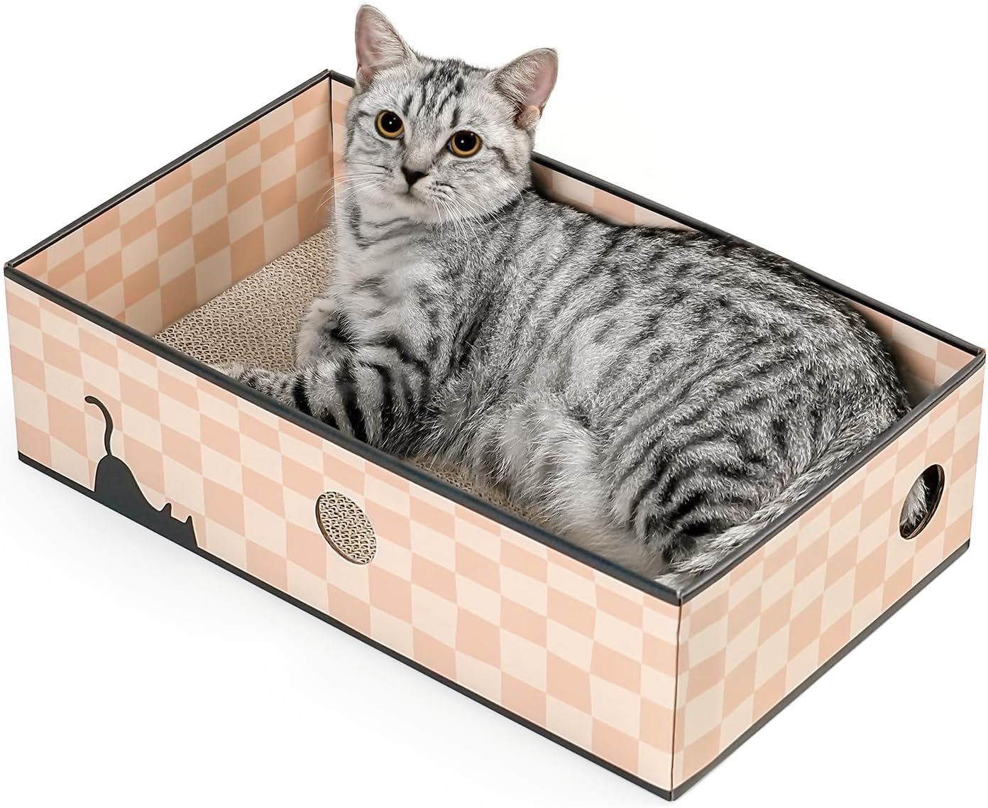 • Чисто драскане без бъркотия: За разлика от отворените мебели за драскане за котки, тази затворена дъска за драскане за котки държи картонените отпадъци в кутията, така че подът да остане чист.