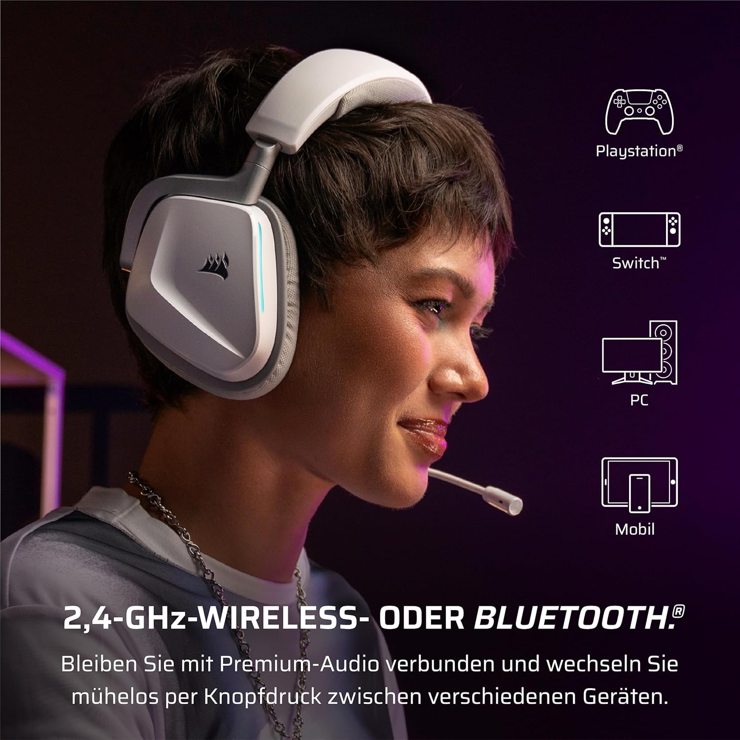 Corsair Void v2 Безжични геймърски слушалки с Bluetooth за PC, PS5, PS4, Switch и мобилни устройства - Dolby Atmos, 70 часа живот на батерията, двойна безжична връзка, бързо зареждане - бели