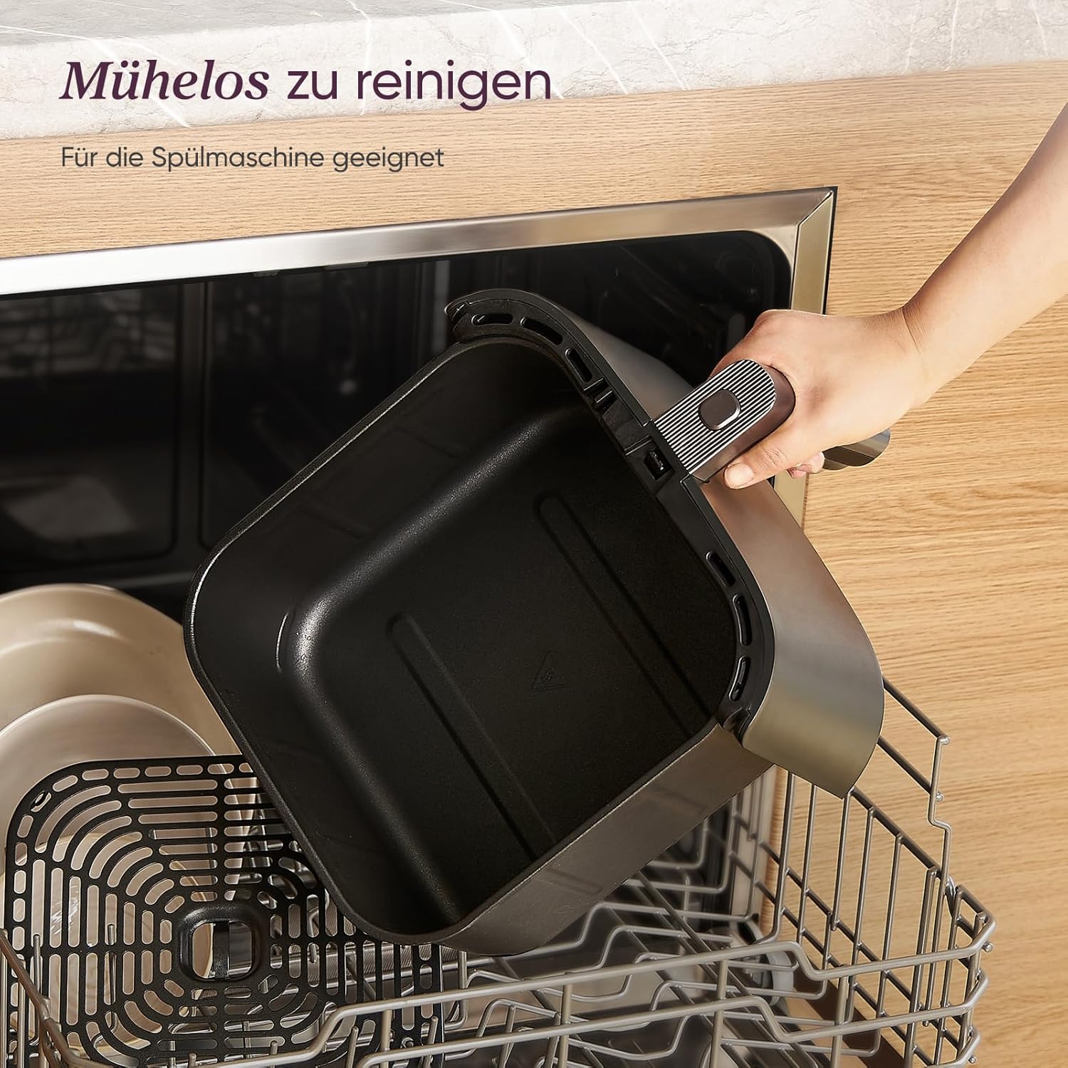 Cosori TurboBlaze Airfryer, 9-в-1 Airfryer XXL 6L, тих DC мотор с 5 скорости на вентилатора, печене, грил, запичане, втасване, дехидратиране, замразяване, 87 рецепти, 64% икономия на енергия, 95% по-малко олио, равномерни и хрупкави резултати
