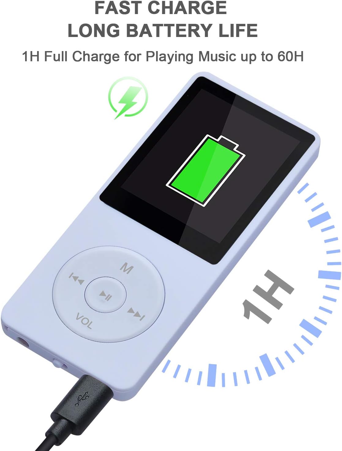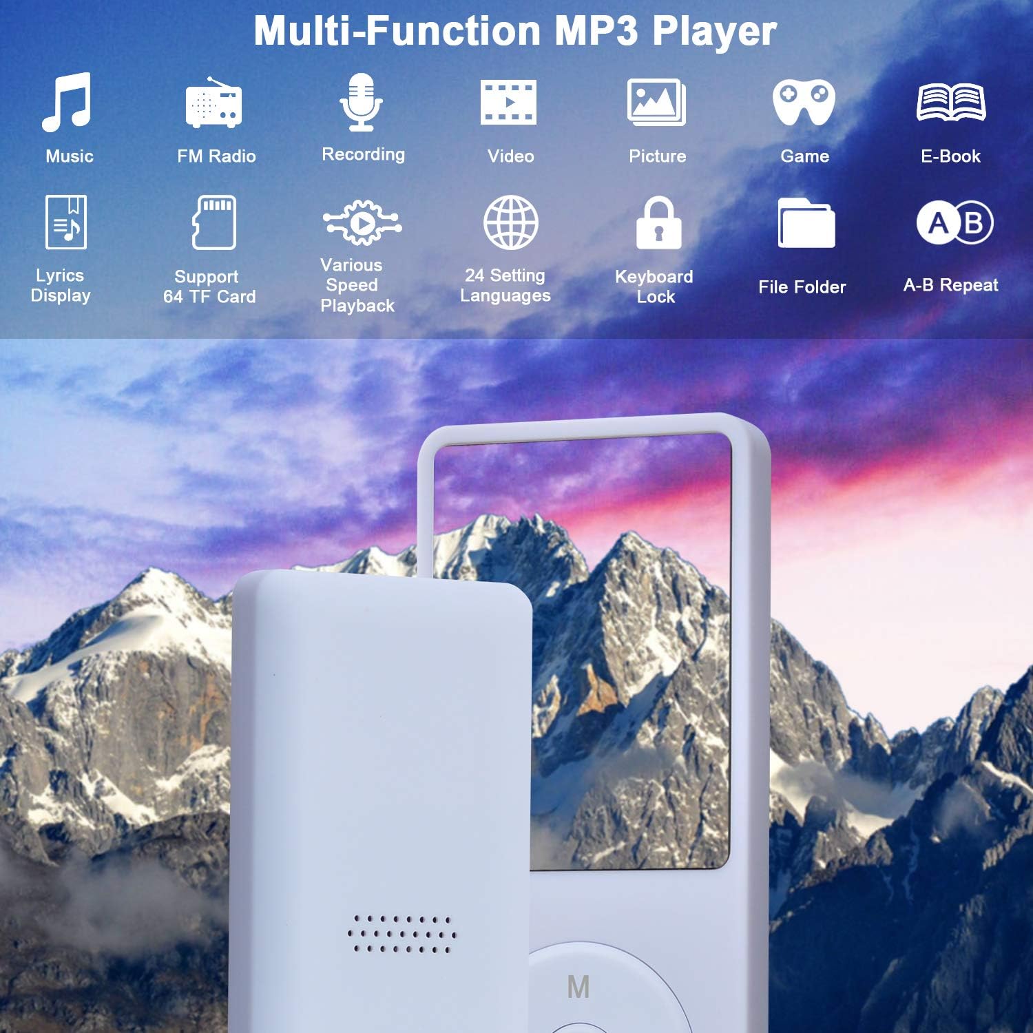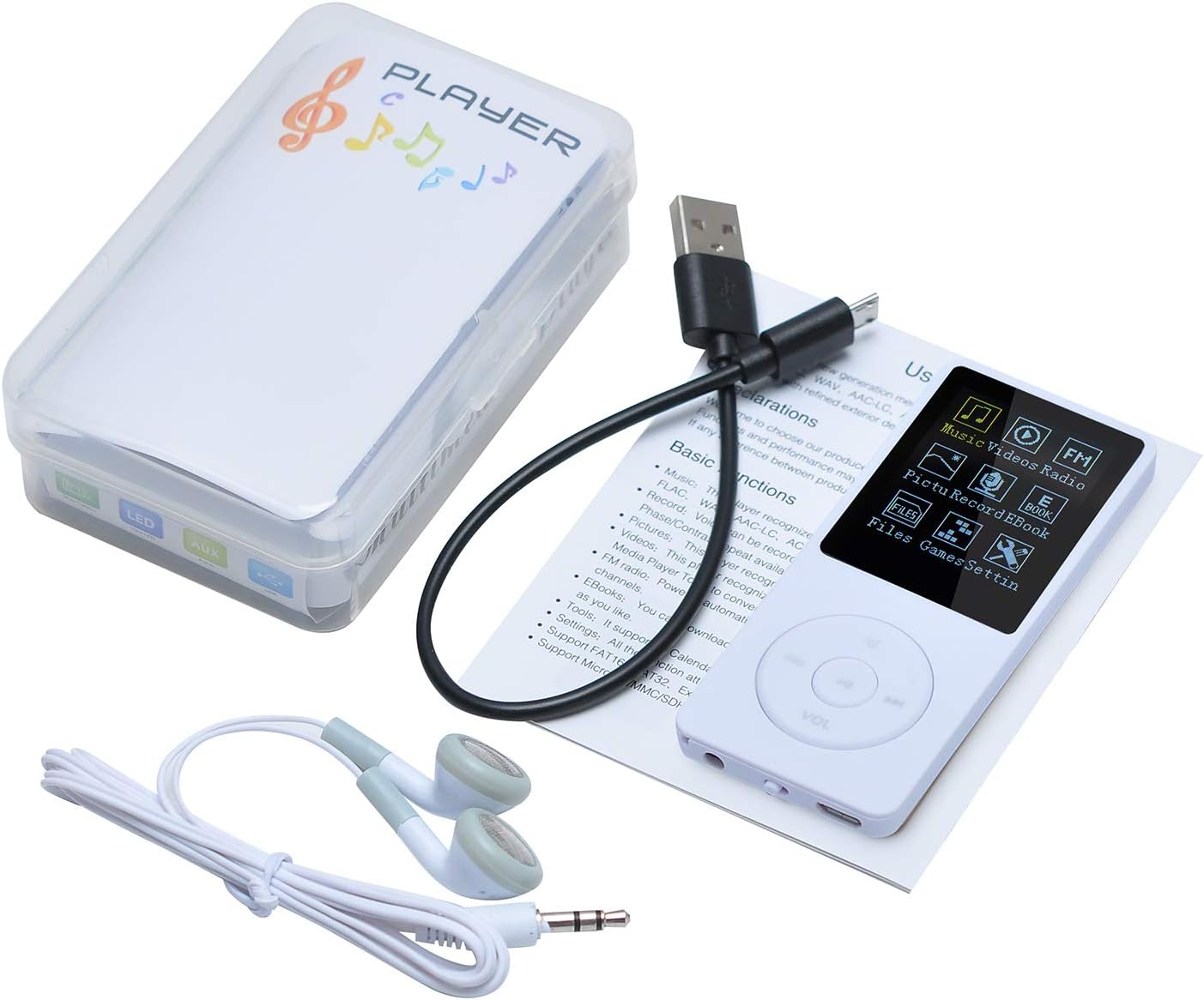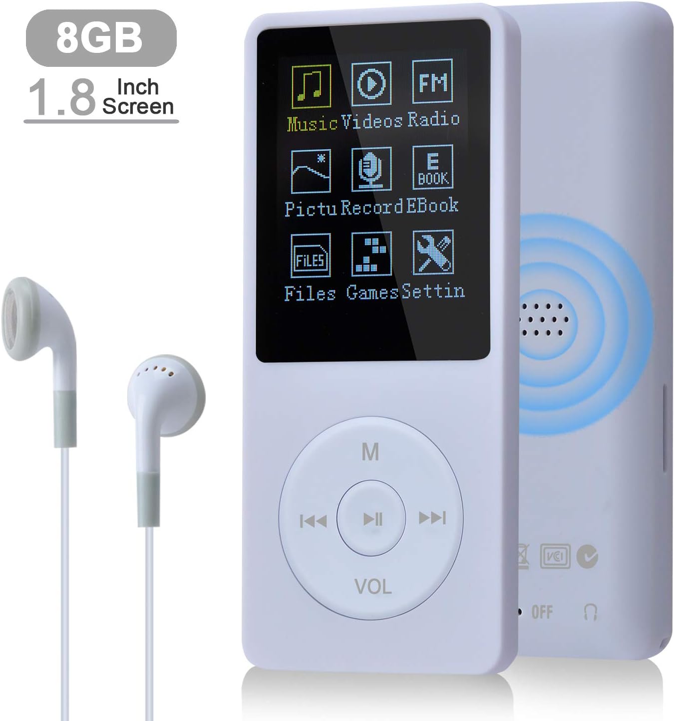 COVVY 8GB преносим MP3 музикален плейър, поддържа SD карти памет до 64GB, звук без загуби HiFi MP3 плейър, музика/видео/гласов запис/FM радио/четец на електронни книги/преглед на снимки (8G, бял)
