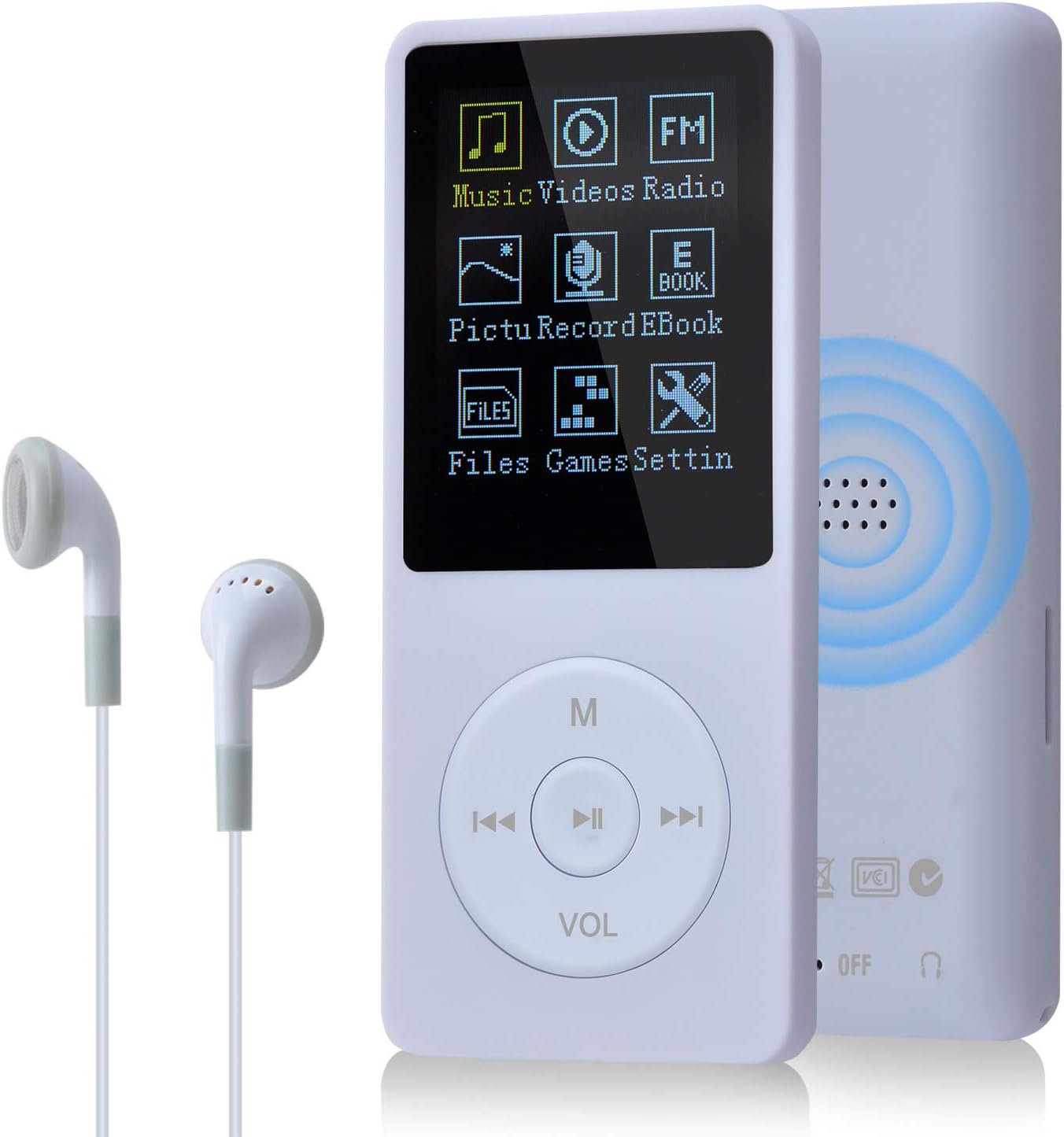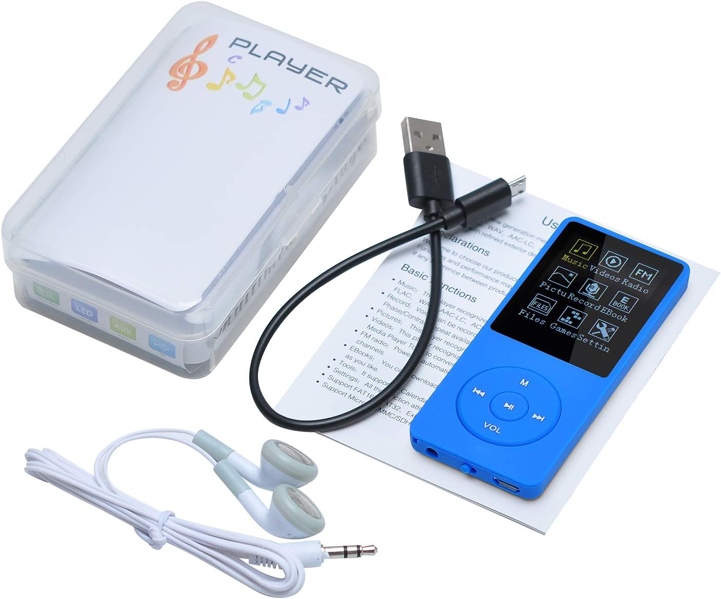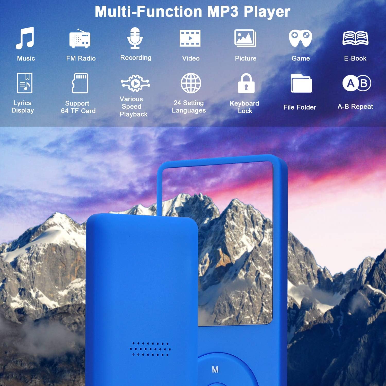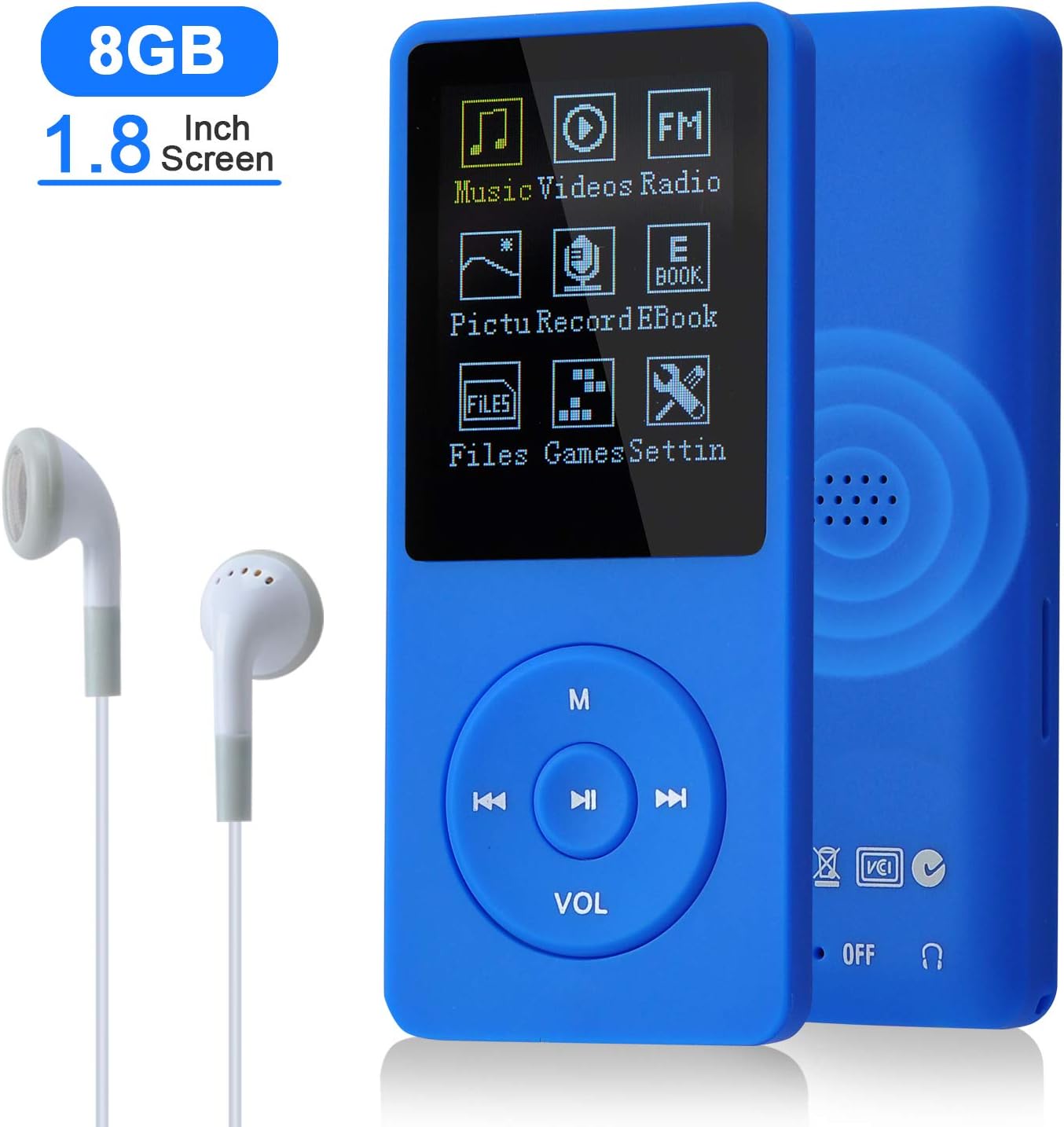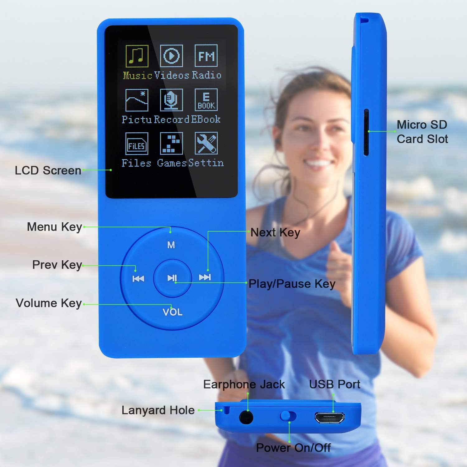 COVVY 8GB преносим MP3 музикален плейър, поддържа SD карти памет до 64GB, звук без загуби HiFi MP3 плейър, музика/видео/гласов запис/FM радио/четец на електронни книги/преглед на снимки (8G, тъмносин)