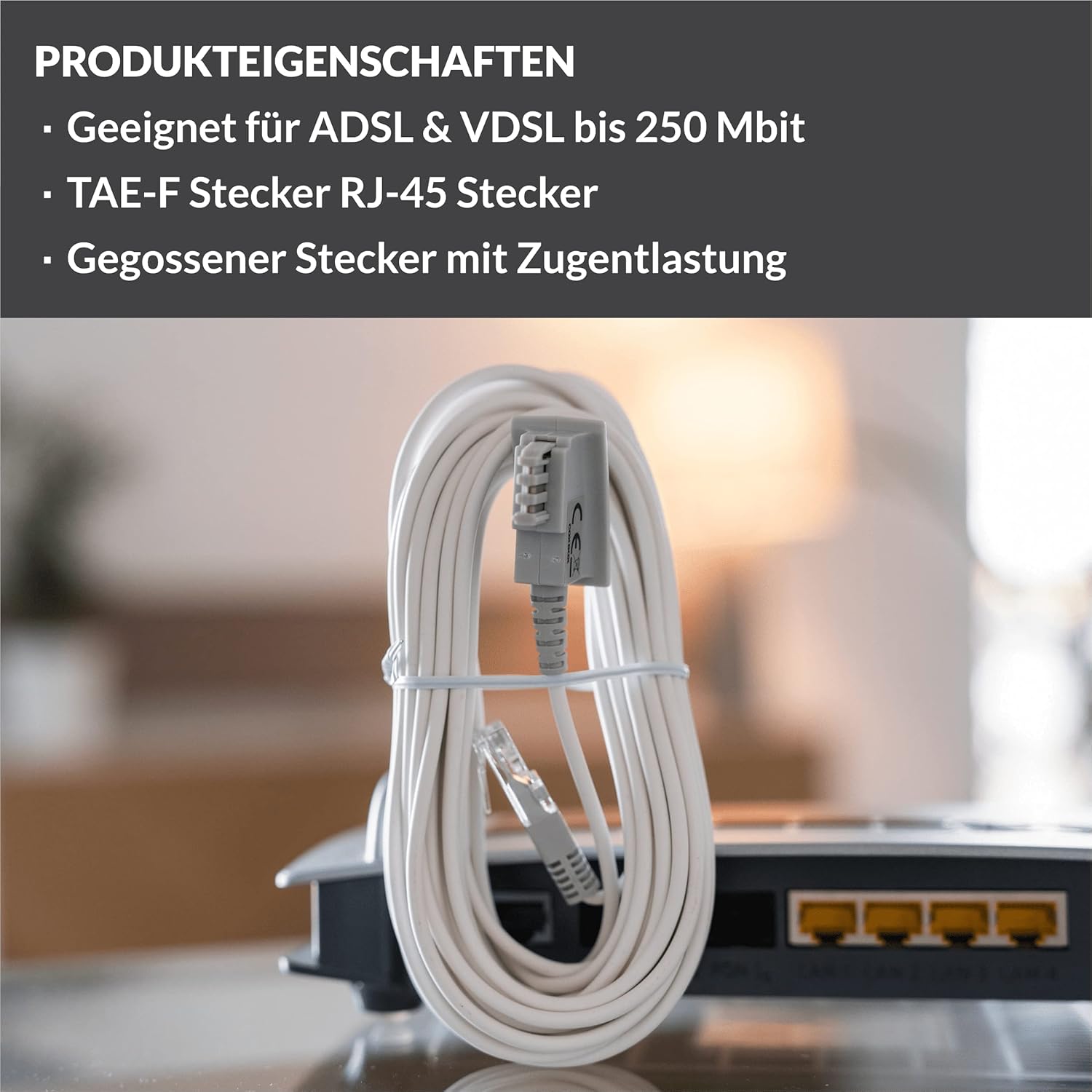 • Универсално съвместим: TAE кабел към рутер със стандартизирани, прецизно пасващи връзки от най-високо качество за обичайните DSL доставчици и рутери - преглед на моделите в описанието на продукта