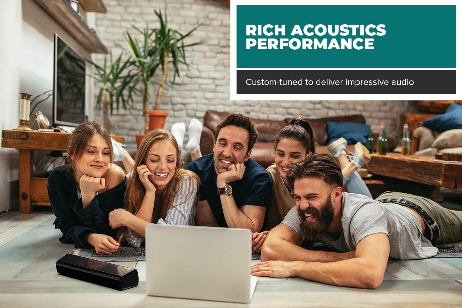 • ПОДОБРЕНО USB АУДИО ИЗЖИВЯВАНЕ - Изпитайте мигновено подобрение в производителността на аудиото от вашия компютър, когато го свържете към саундбара Creative Stage Air V2 с включения USB-A към USB-C кабел. Насладете се на богато и стабилно аудио представяне, задвижвано от два специално настроени широколентови драйвера и голям басов радиатор за филми, музика и игри.