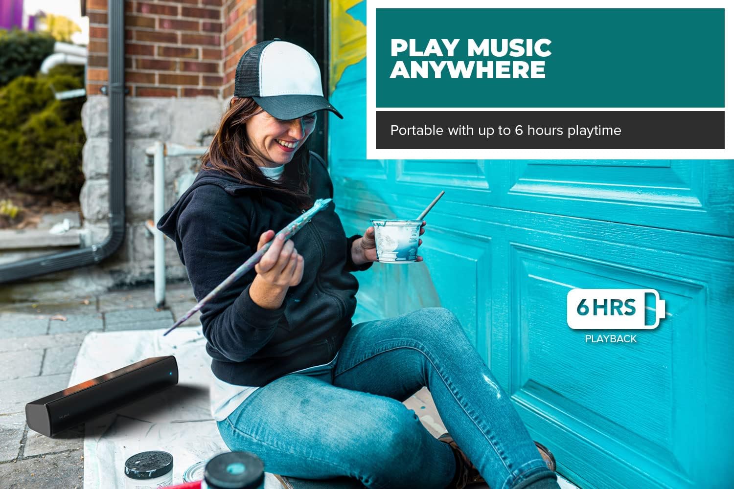 • Преносим с дълъг живот на батерията - С време за възпроизвеждане до 6 часа с едно зареждане, можете лесно да вземете Creative Stage Air V2 навсякъде, независимо дали ремонтирате колата си в гаража или си приготвяте пиршество в кухнята, наслаждавайки се на страхотно аудио забавление почти навсякъде у дома, без да е необходимо да сте свързани към източник на захранване.