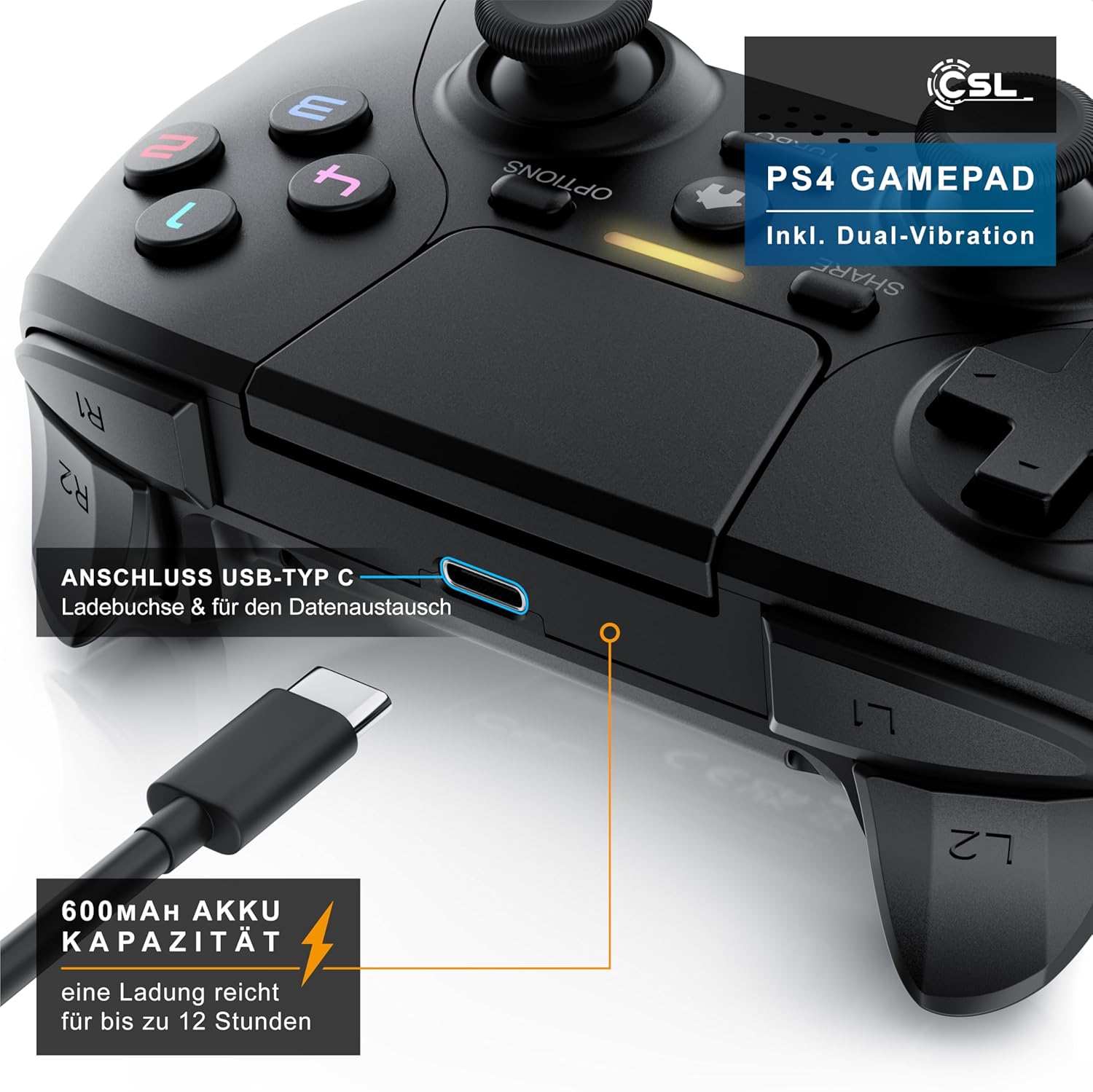 Изживейте интензивно гейминг с безжичния геймпад CSL - вашият идеален спътник за PlayStation 4,