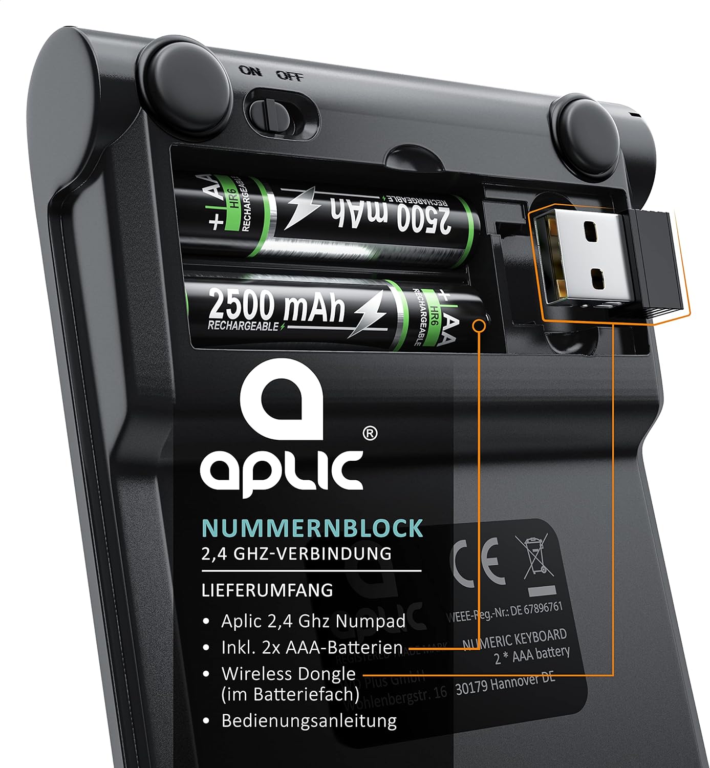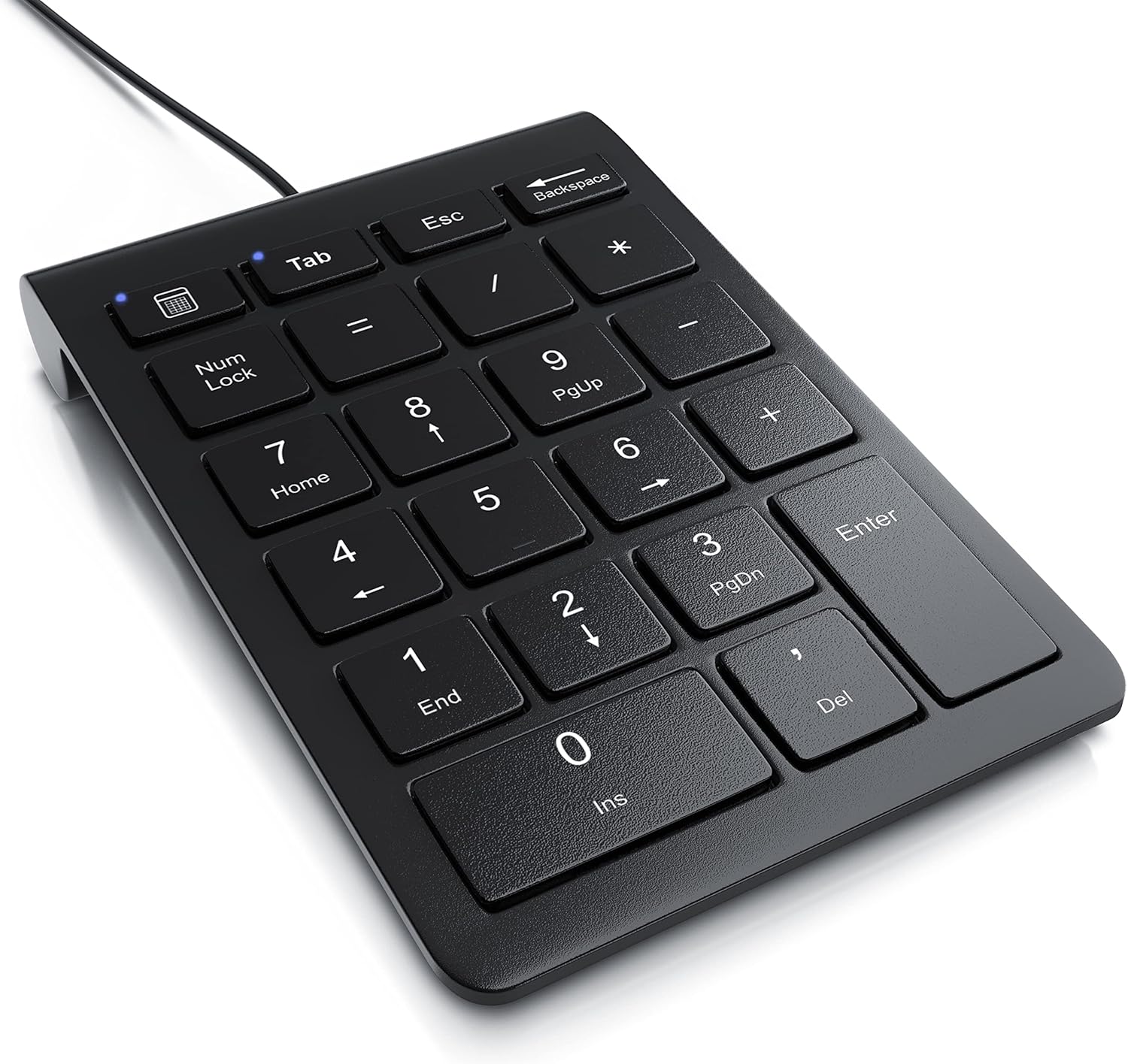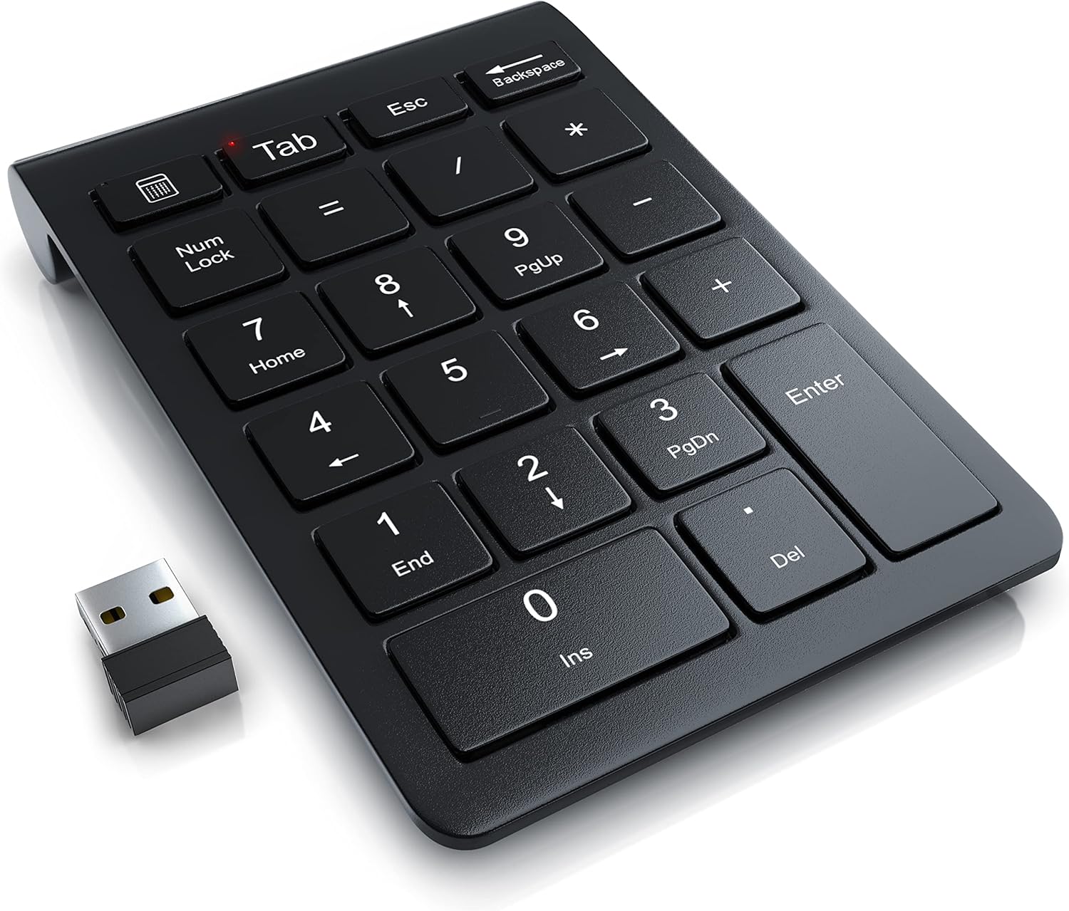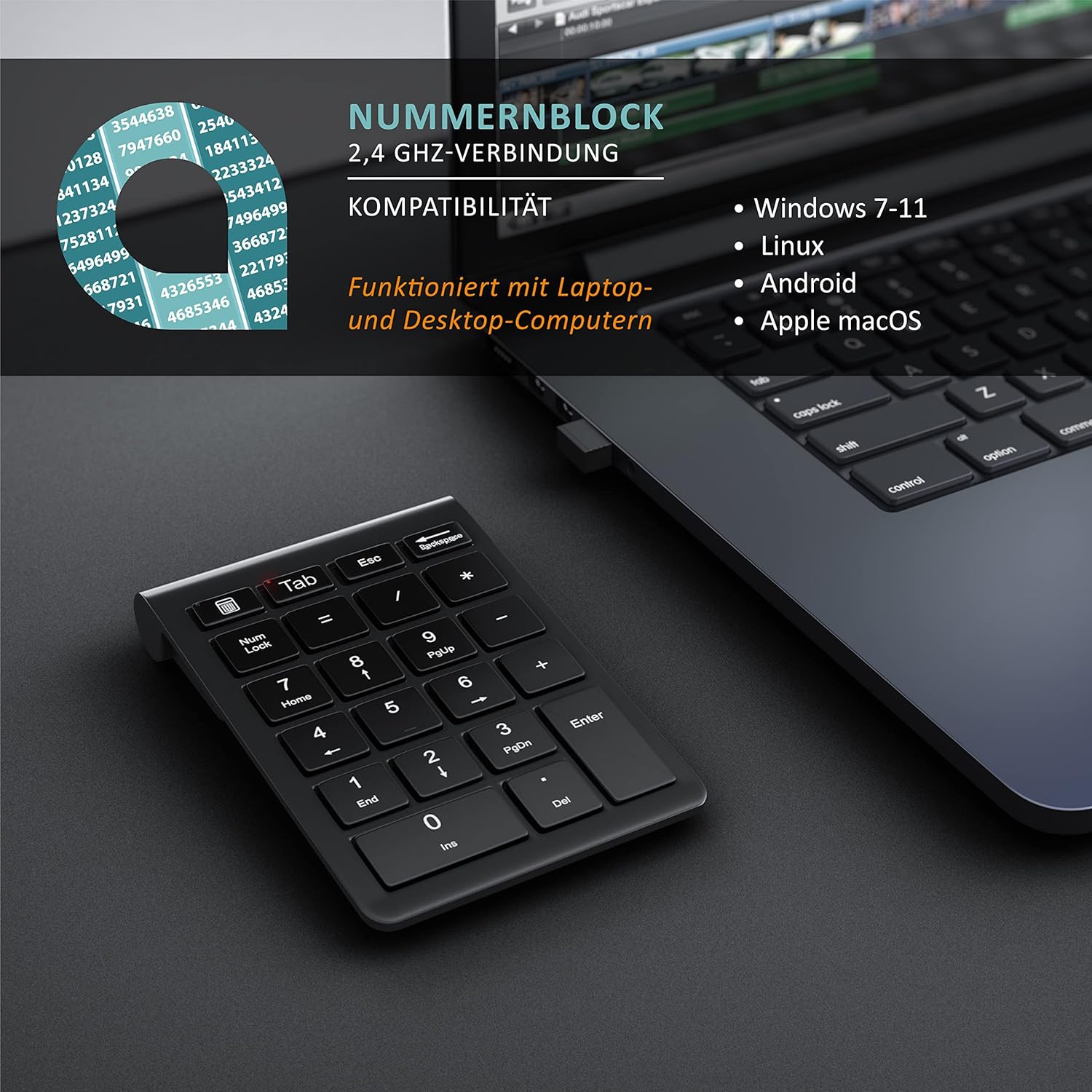 Универсален цифров блок с Bluetooth версия 3.0. Цифров блок с 22 клавиша, 6 реда клавиши един върху друг. Клавиатурата е наклонена напред за по-добра използваемост. 10 многофункционални клавиша. Активирайте бутона "NumLock" и една от цифрите от 1-0 или "." Стискайте. Функции: End, стрелка надолу, нагоре, наляво, надясно, pos1 (home), изображение нагоре и надолу, вмъкване и изваждане. Бутон със символ на калкулатор отваря компютъра с Windows. Приятно големи клавиши като на стандартна клавиатура, прецизна точка на натиск, бърза реакция. Автоматичен режим за пестене на енергия, предпазващ батерията. Удобни размери за лесно пренасяне. Съвместим с Windows 7-10, Linux и Android (няма функция за PgUp/PgDn/Home, e/End/= и Esc). За Apple macOS, функционират само цифров блок и цифрови символи.