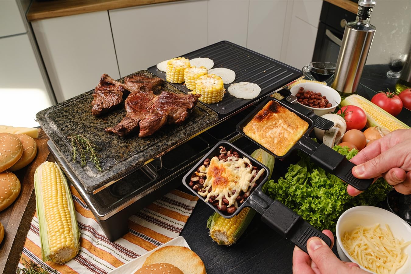 8 независими тави за раклет могат да отговорят на различните нужди на 8 души и всеки може да създава различни комбинации от храни.