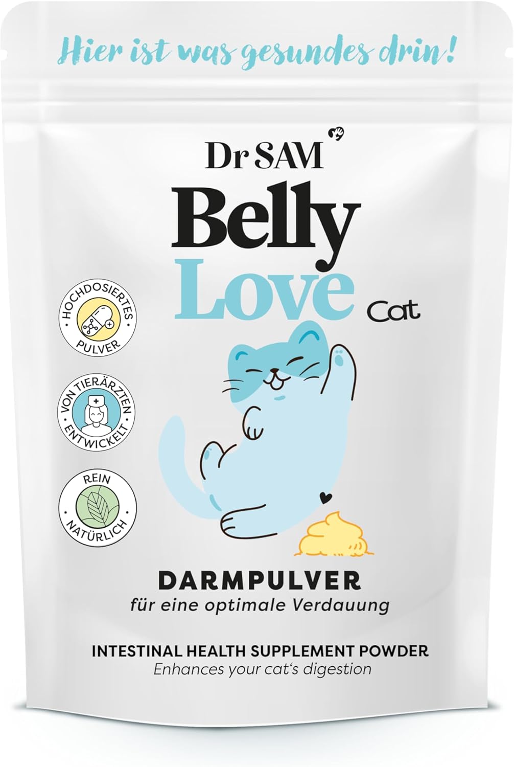 Д-р САМ Премиум чревен прах за котки - BellyLove като растителен чревен и стомашен прах за чревен баланс - поддържащ стомашно-чревни разстройства - пробиотик с висока доза - 45 г