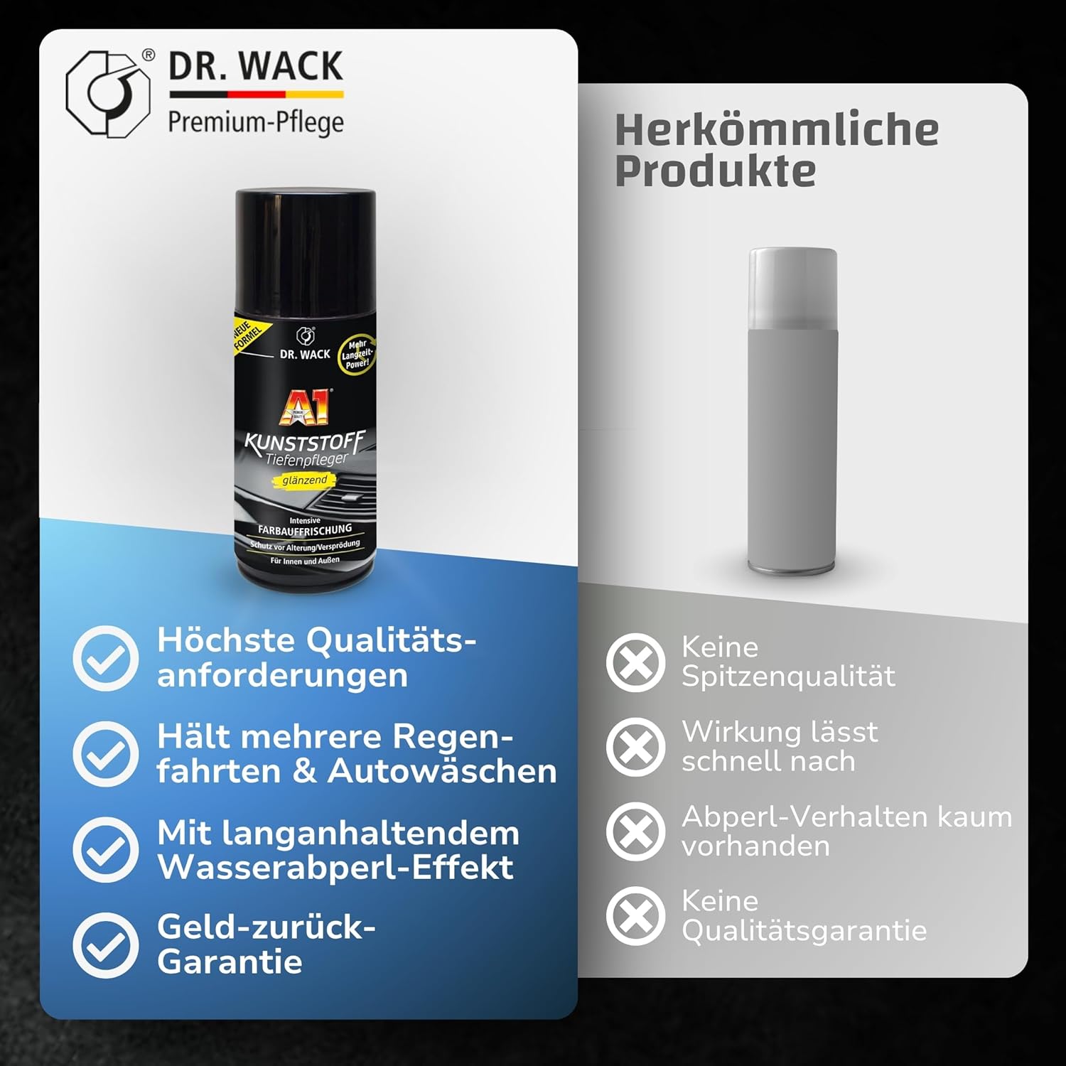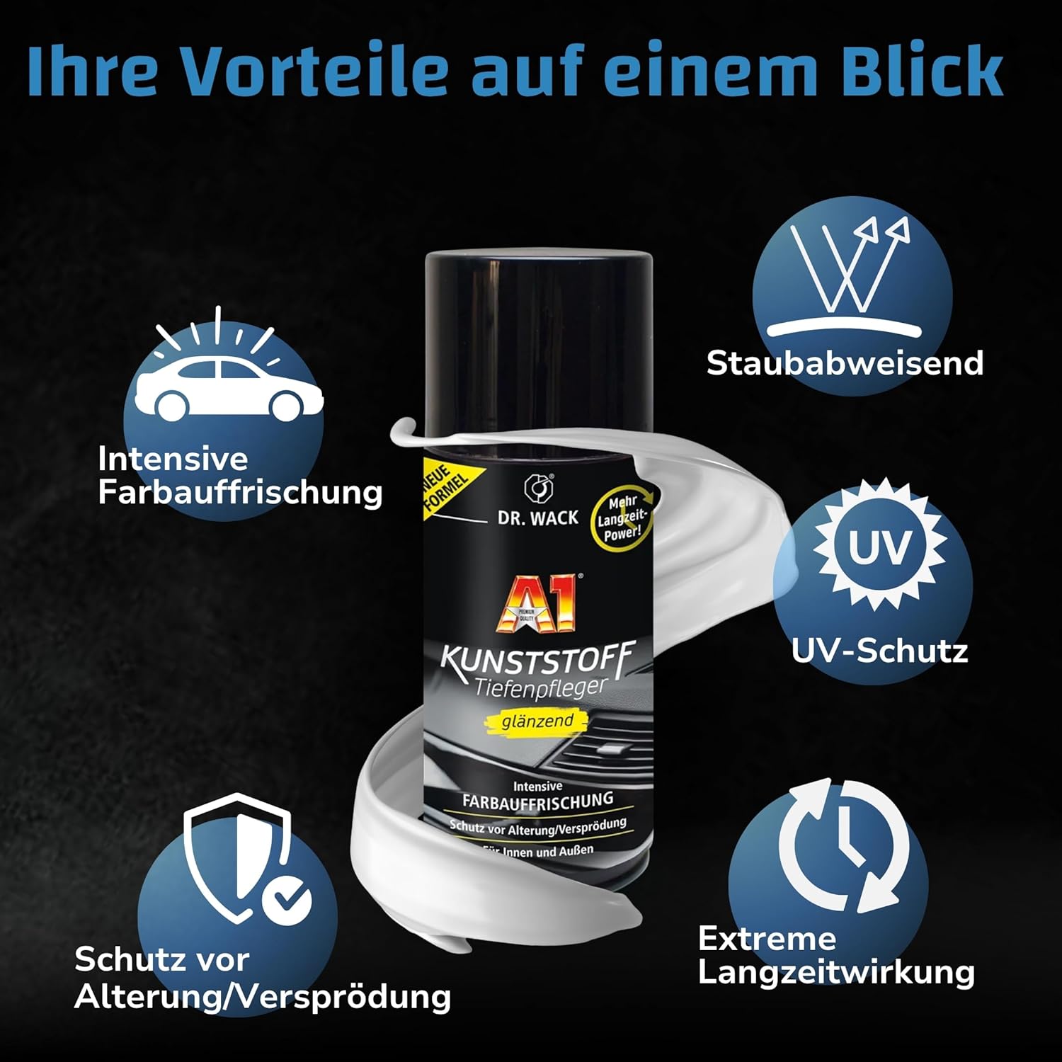 • Дългосрочна формула – с грижата за пластмаси Dr. Wack можете да постигнете интензивно освежаване и грижа за цвета благодарение на новата формула – за перфектен външен вид отвътре и отвън.