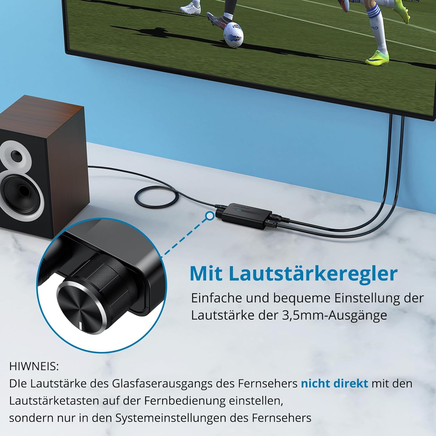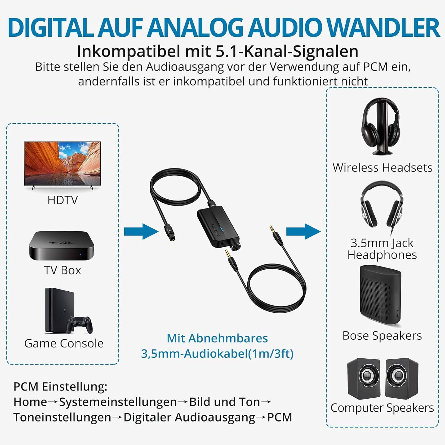 • Plug and Play: Лесна инсталация и работа, без софтуер, без нужда от драйвери; работи чудесно с HDTV, цифрови приемници, DVD/Blu-Ray плейъри и игрови конзоли. (ЗАБЕЛЕЖКА: Не е съвместим с 5.1-канални сигнали като Dolby AC3, моля, настройте аудио изхода на PCM преди употреба)