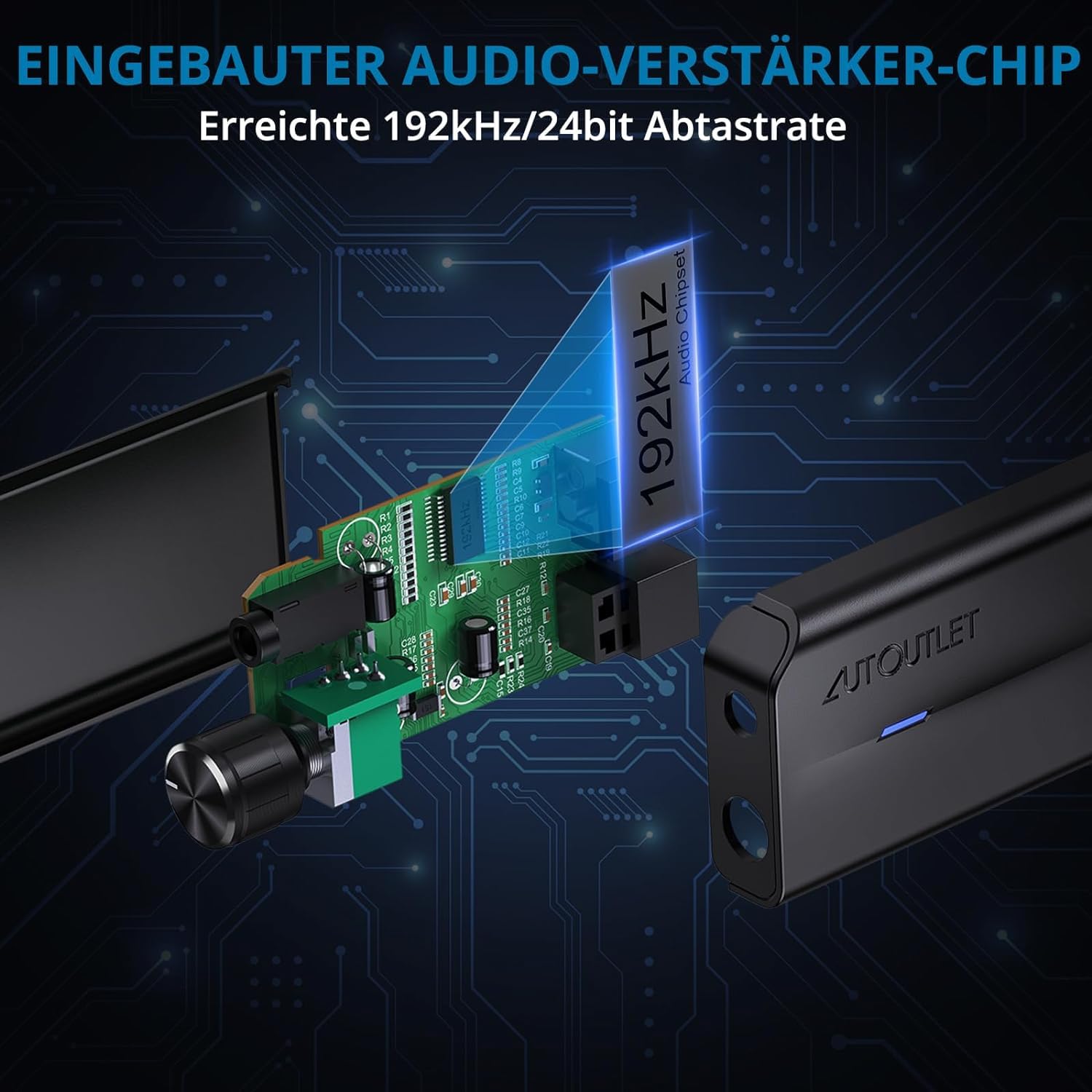 • 192 kHz цифрово-аналогов преобразувател: 192 kHz DAC е разработен за професионална обработка на аудио сигнали. AUTOUTLET 192 kHz цифрово-аналоговият преобразувател може лесно да преобразува оптичния SPDIF интерфейс в аналогов RCA аудио интерфейс за стерео усилвател.
