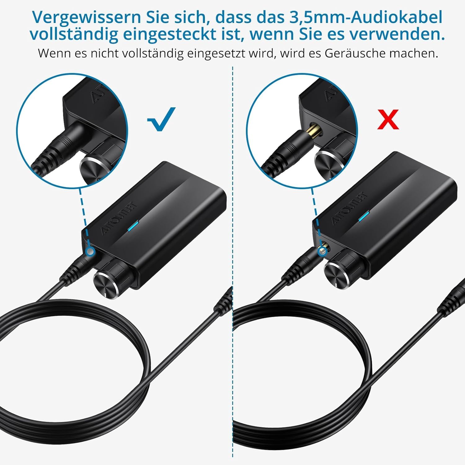 • Съдържание на пакета: пакетът съдържа 1 x 192 kHz DAC конвертор с 1 x RCA кабел мъжки (1,1 м); 1 x оптичен кабел (1 м); 1 x USB захранващ кабел и 1 x многоезично ръководство (разбира се, и на немски)