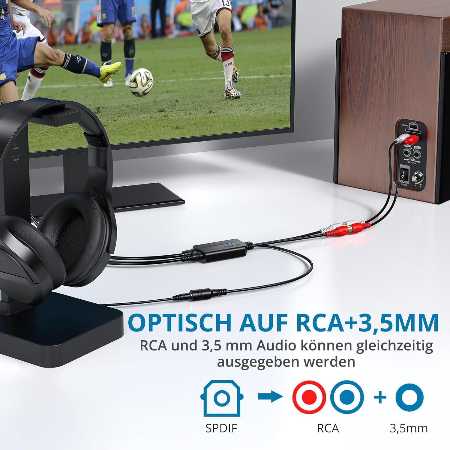 • Plug and Play: Лесна инсталация и работа, без софтуер, без нужда от драйвери; работи чудесно с HDTV, цифрови приемници, DVD/Blu-Ray плейъри и игрови конзоли. (ЗАБЕЛЕЖКА: Не е съвместим с 5.1-канални сигнали като Dolby AC3, моля, настройте аудио изхода на PCM преди употреба)