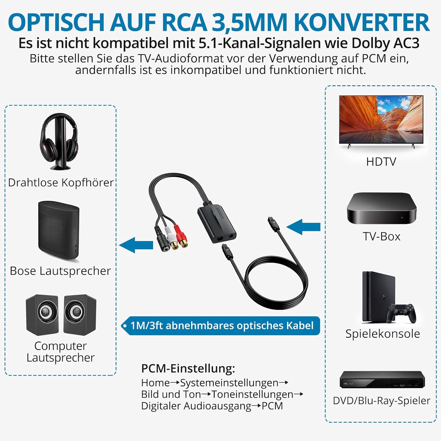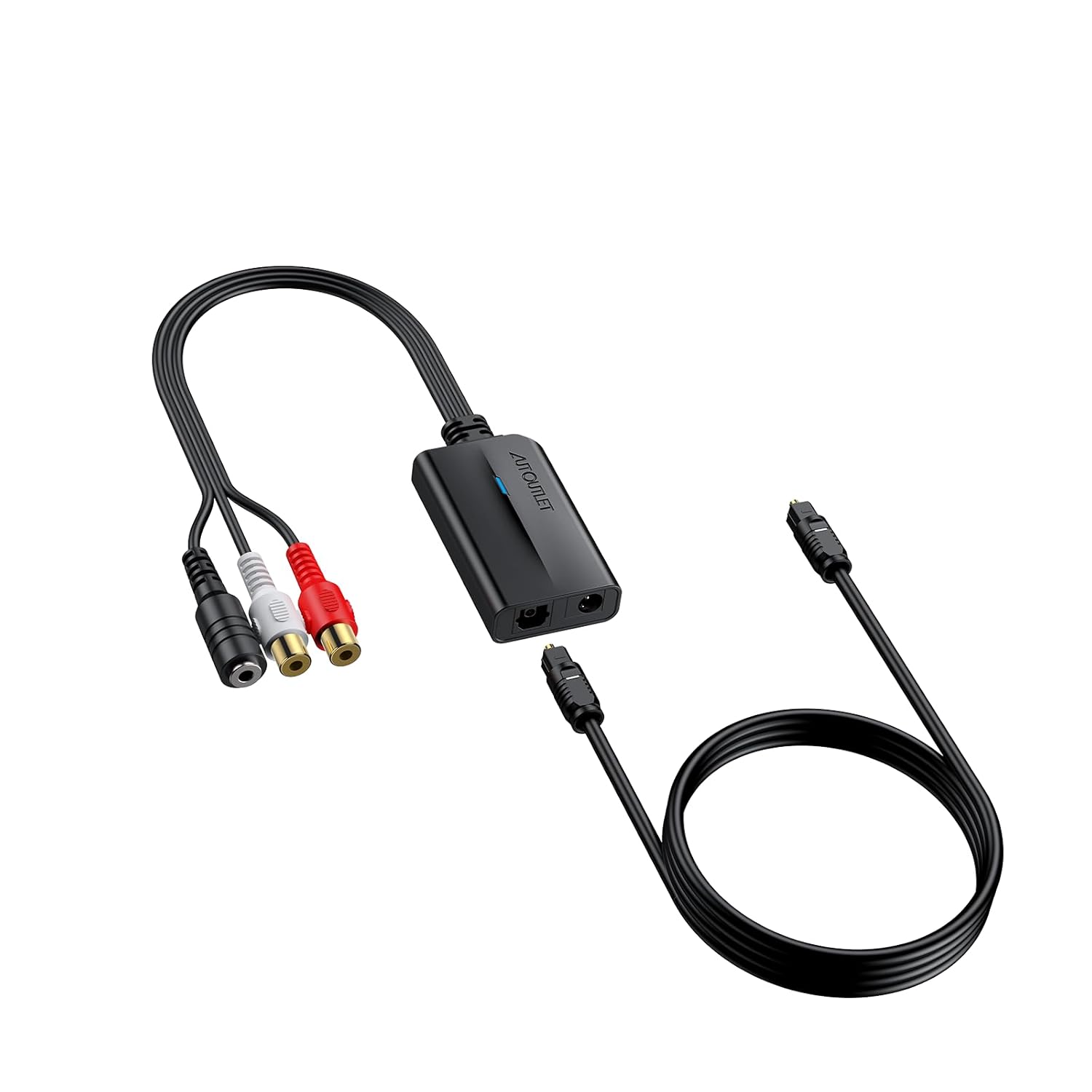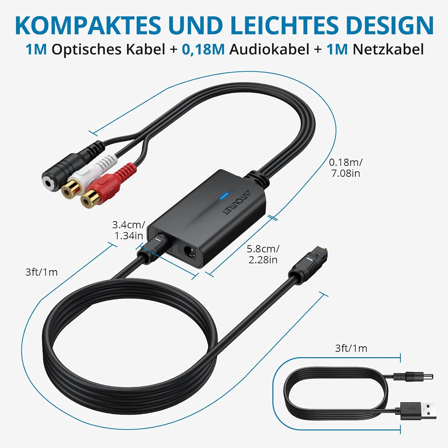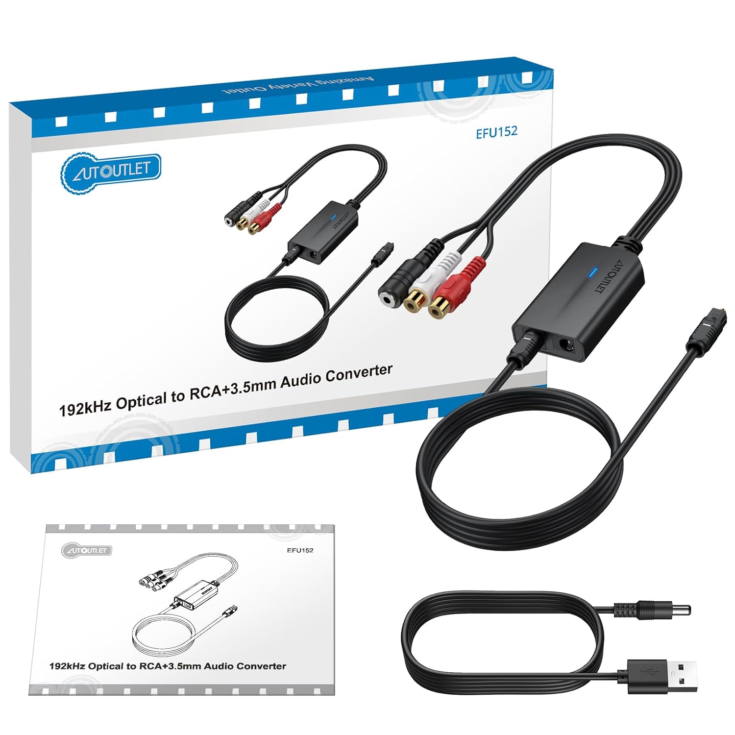 DA конвертор, AUTOUTLET 192kHz DAC конвертор, цифрово-аналогов аудио конвертор, SPDIF оптичен Toslink към аналогов RCA аудио адаптер 3.5 мм с 1M оптичен кабел за HDTV DVD Blu-ray Sky Xbox PS3 PS4