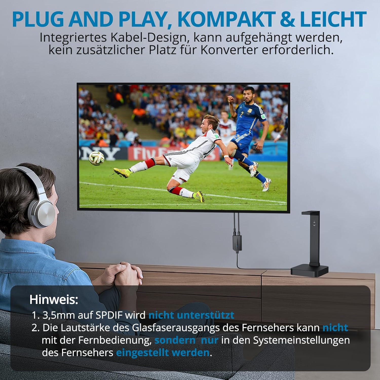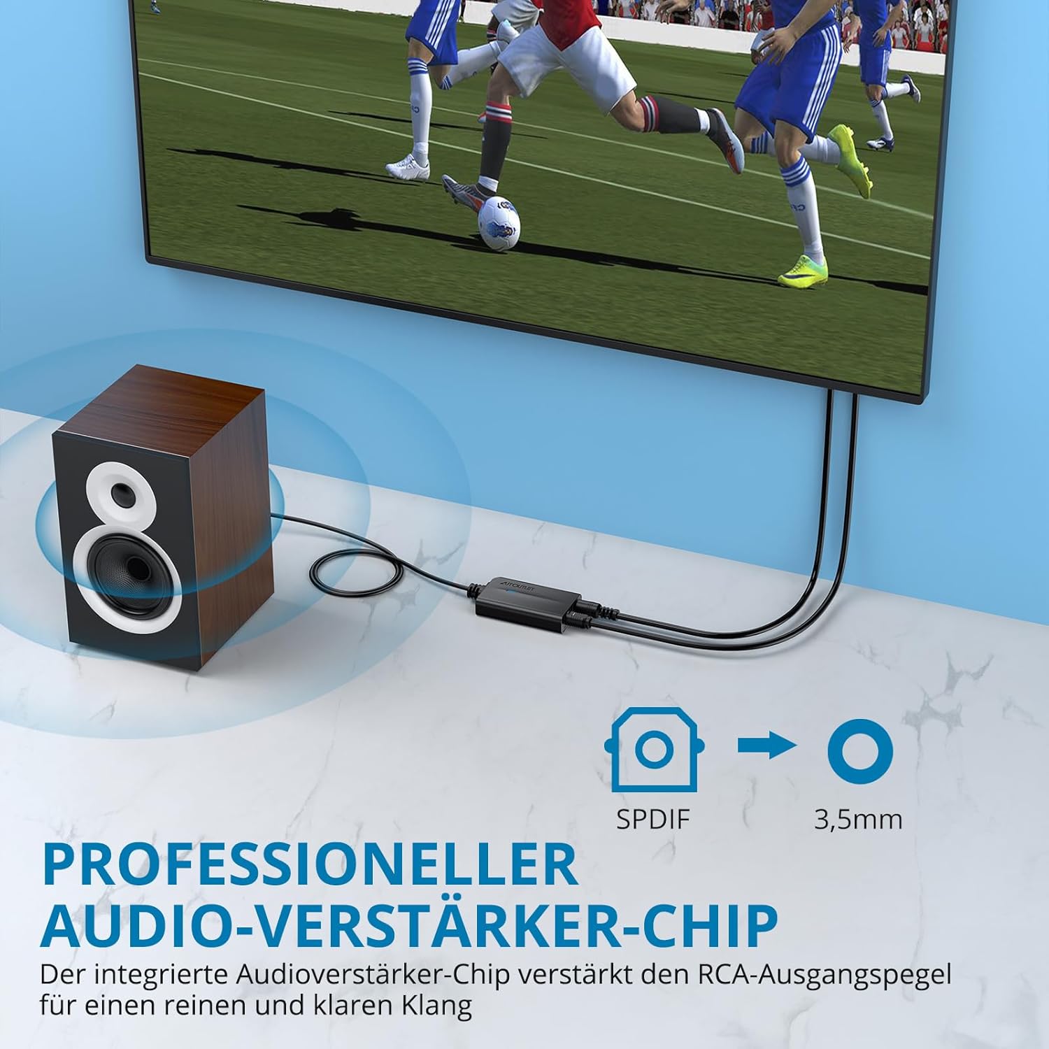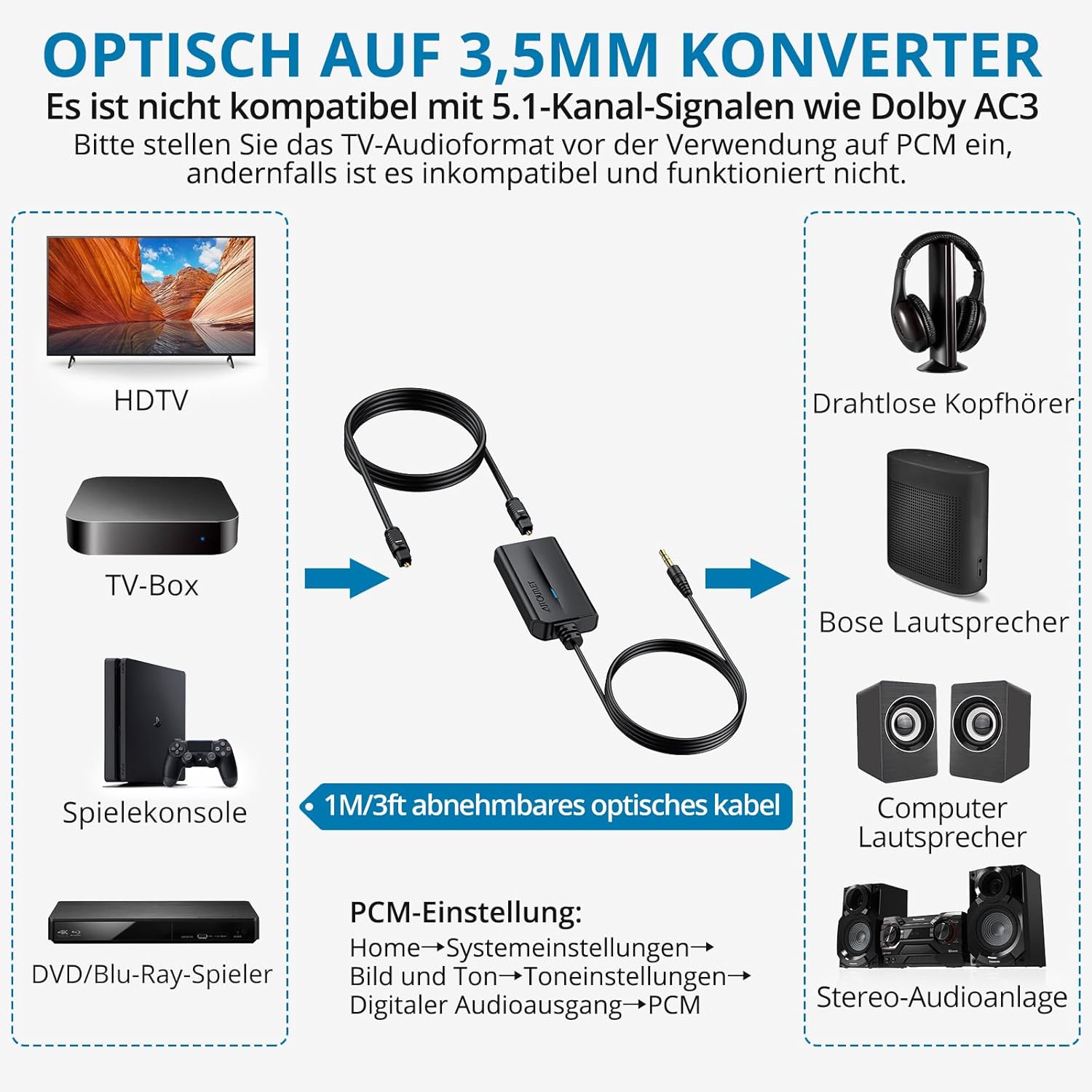 • Plug and Play: Лесна инсталация и работа, без софтуер, без нужда от драйвери; работи чудесно с HDTV, цифрови приемници, DVD/Blu-Ray плейъри и игрови конзоли. (ЗАБЕЛЕЖКА: Не е съвместим с 5.1-канални сигнали като Dolby AC3, моля, настройте аудио изхода на PCM преди употреба)