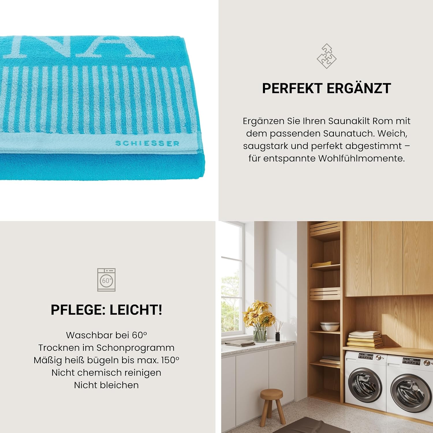 Напред към сауната. Задоволете копнежа си за почивка с колекцията за сауна Schiesser Rome. Помислете за красиви, абсорбиращи сауна килтове и големи, меки кърпи за сауна, които са перфектно съчетани. Време е за релакс.