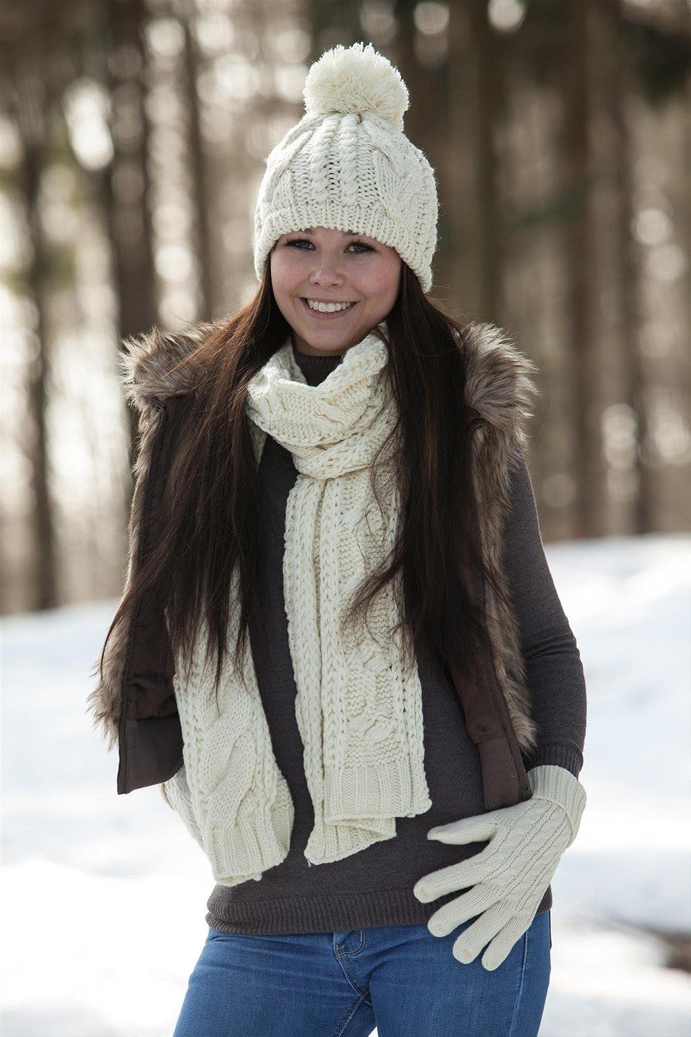 Дамски комплект за студено време styleBREAKER, Зимна шапка, Зимен шал, Зимни ръкавици, Високо качество, Бежови