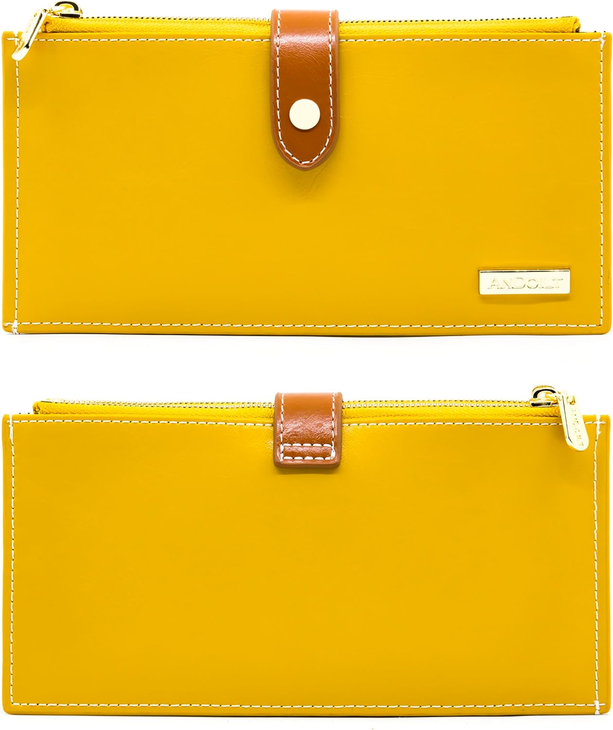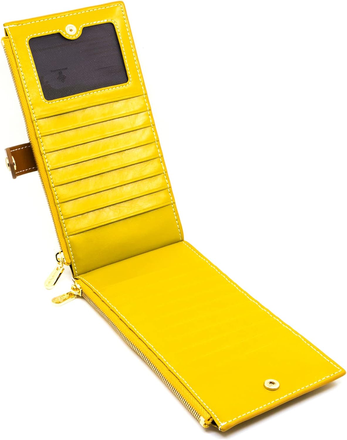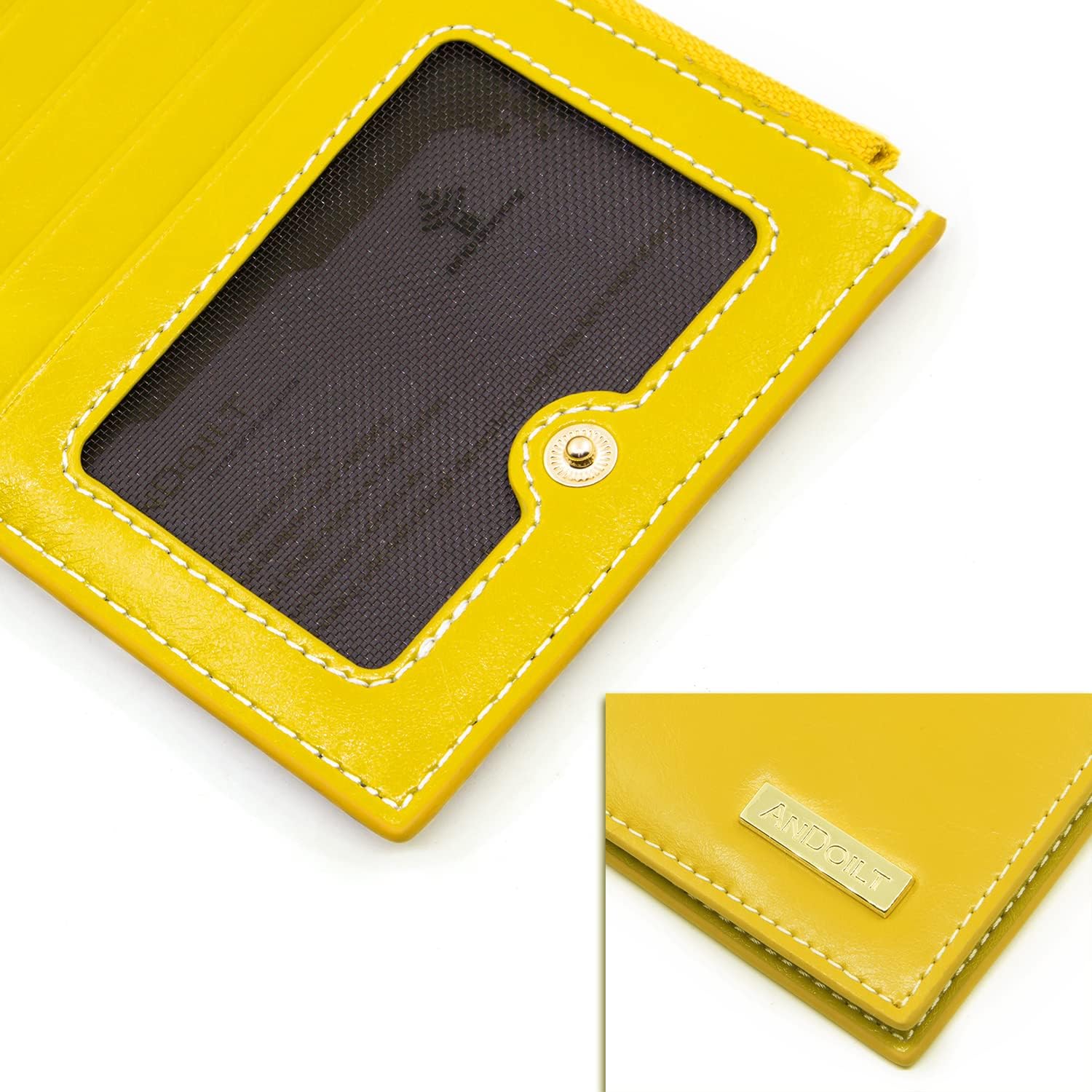 Дамски портфейл Andolit, 100% Естествена кожа, RFID защита, 17 слота за карти, Жълт