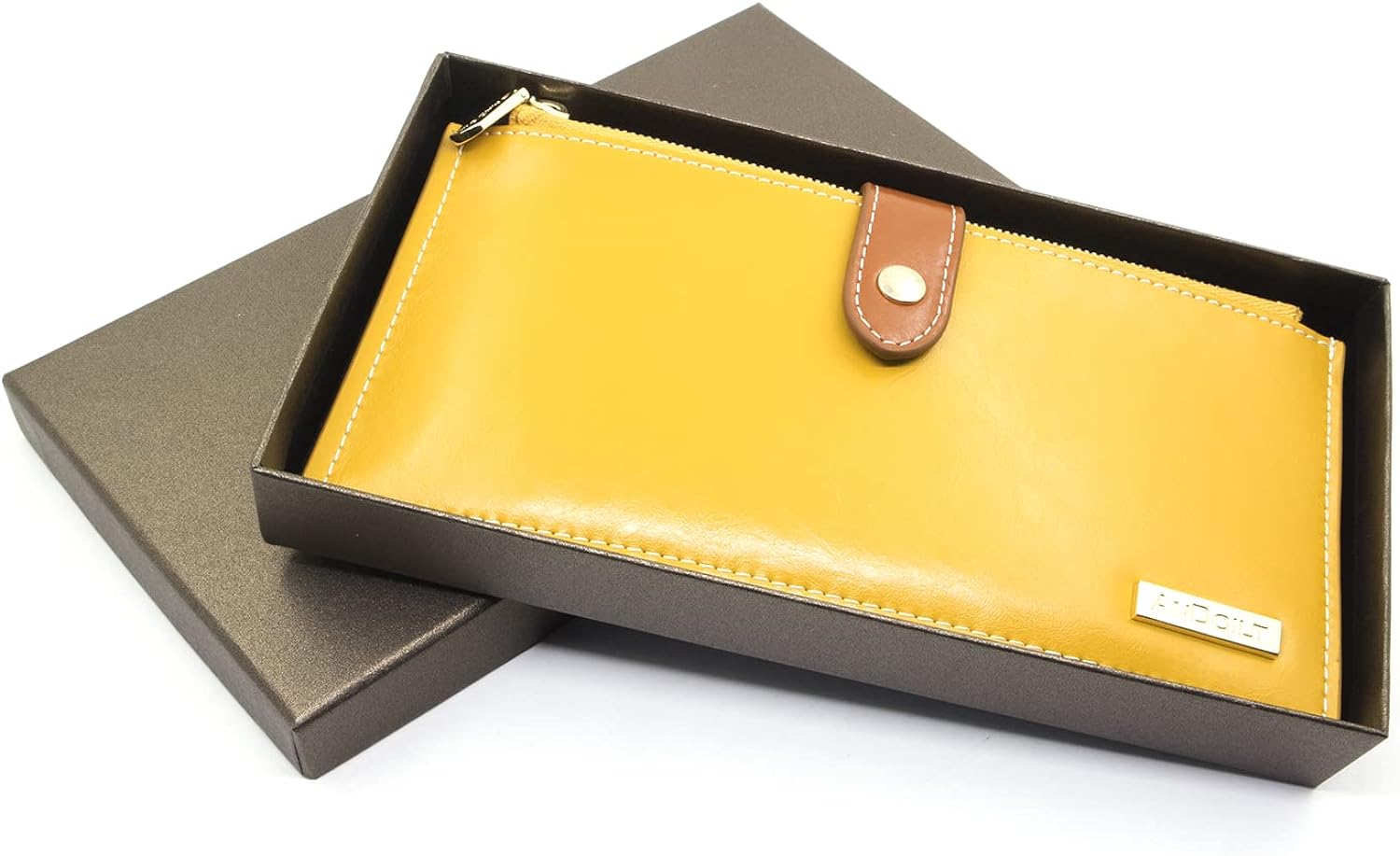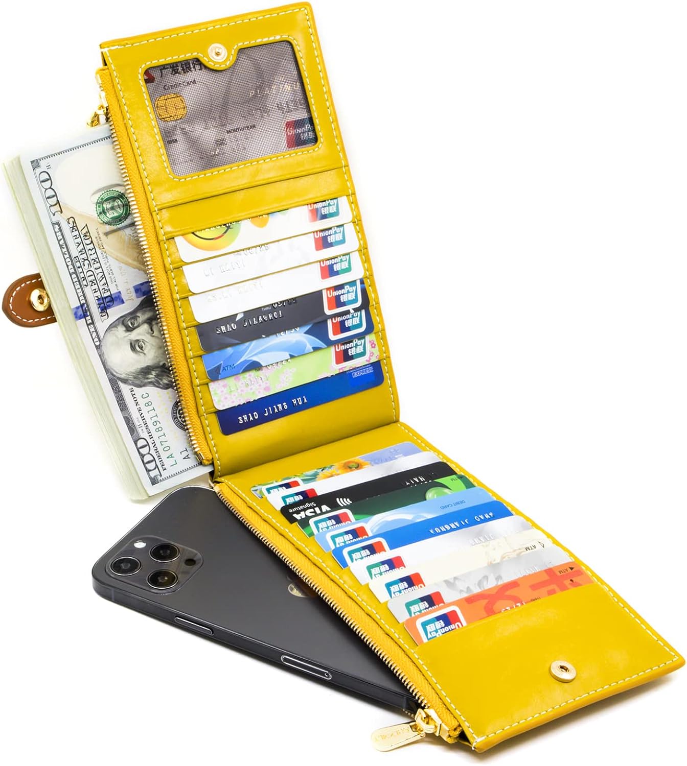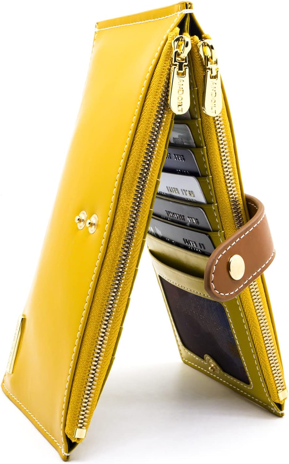 Дамски портфейл Andolit, 100% Естествена кожа, RFID защита, 17 слота за карти, Жълт