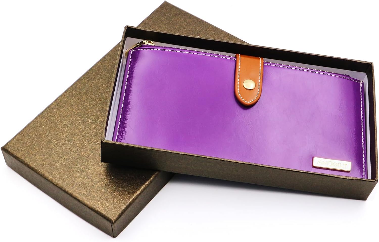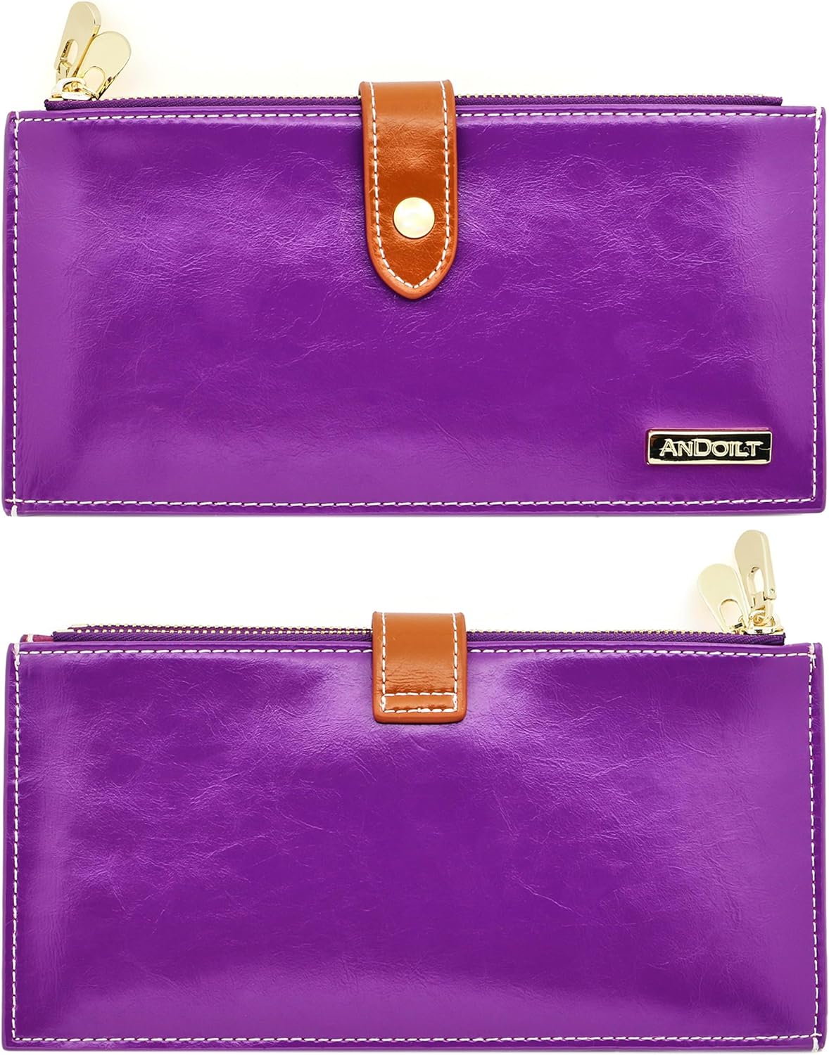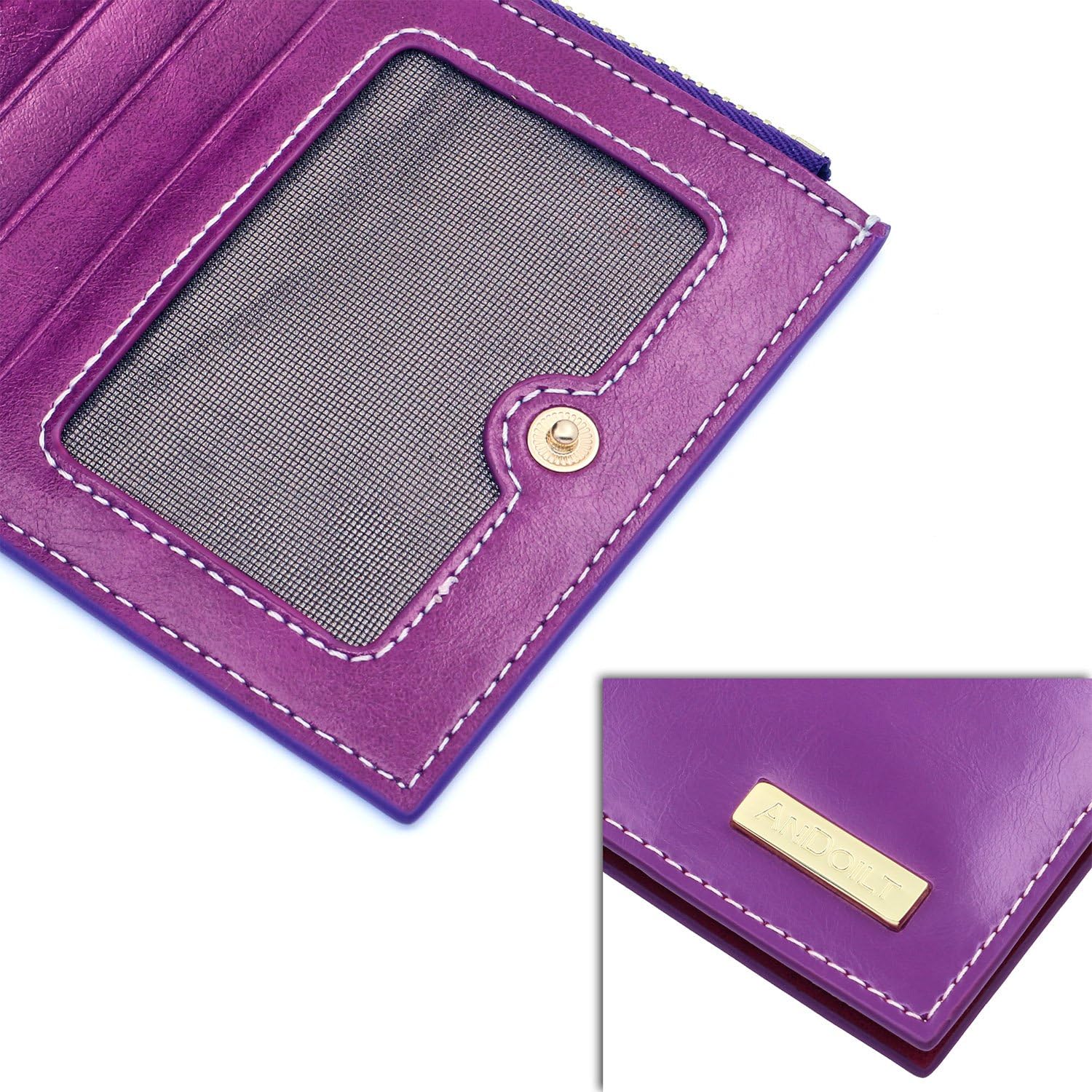 Дамски портфейл Andolit, 100% Естествена кожа, RFID защита, 17 слота за карти, Лилав