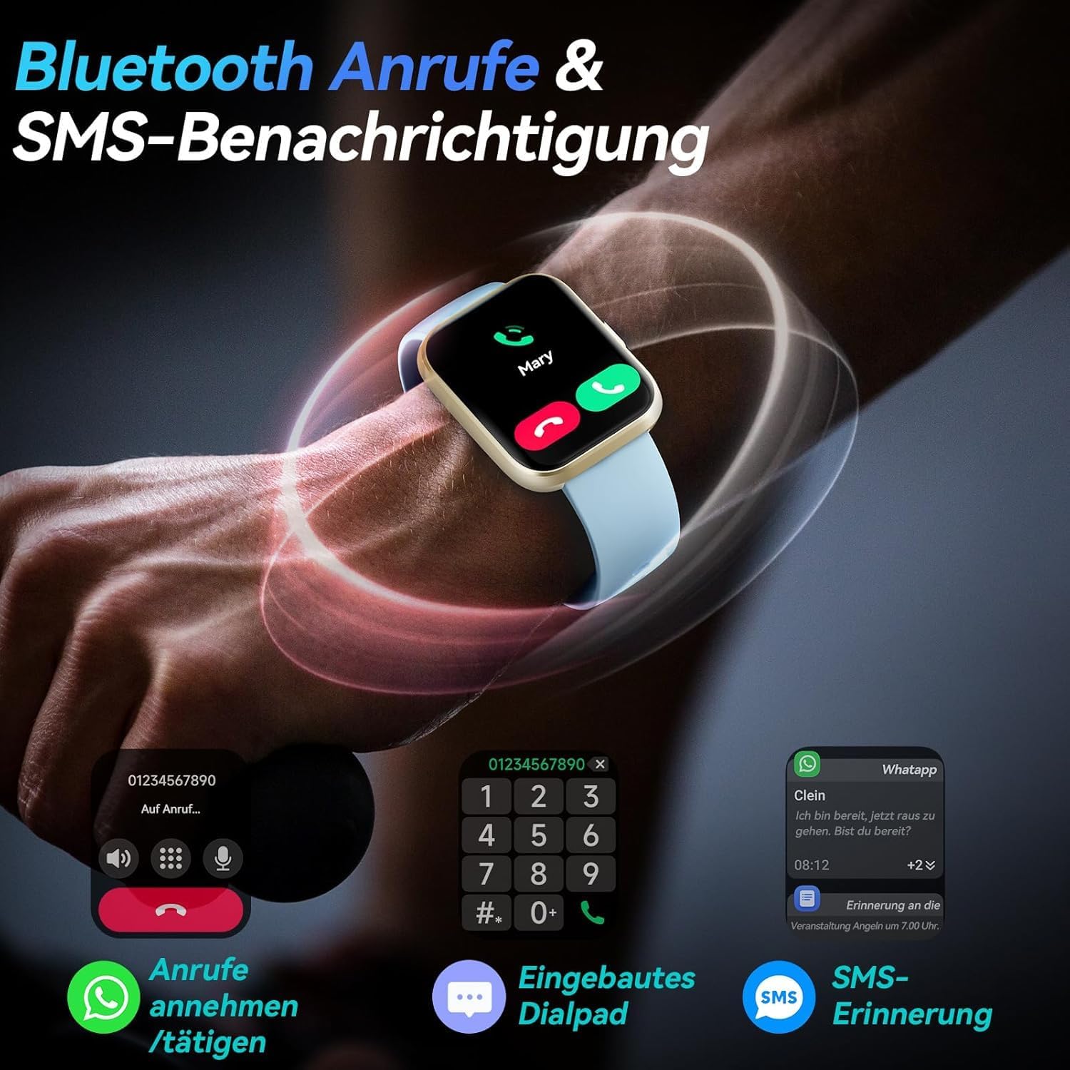 Дамски смарт часовник Fitpolo с функция за телефон, 1.8-инчов фитнес часовник с вградена Alexa и водоустойчивост IP68, 110+ спортни режима, крачкомер с монитор за пулс/SpO2/сън, за Android и iOS