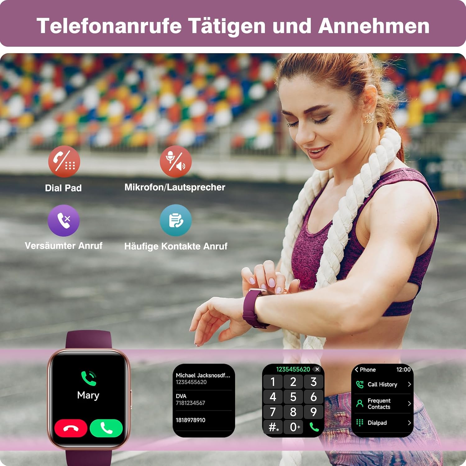 Дамски смарт часовник Fitpolo с функция за телефон, смарт часовник с Alexa, 1.8-инчов фитнес тракер с пулсомер, SpO2, монитор за стрес и сън, фитнес часовник IP68, водоустойчив спортен часовник за жени за Android