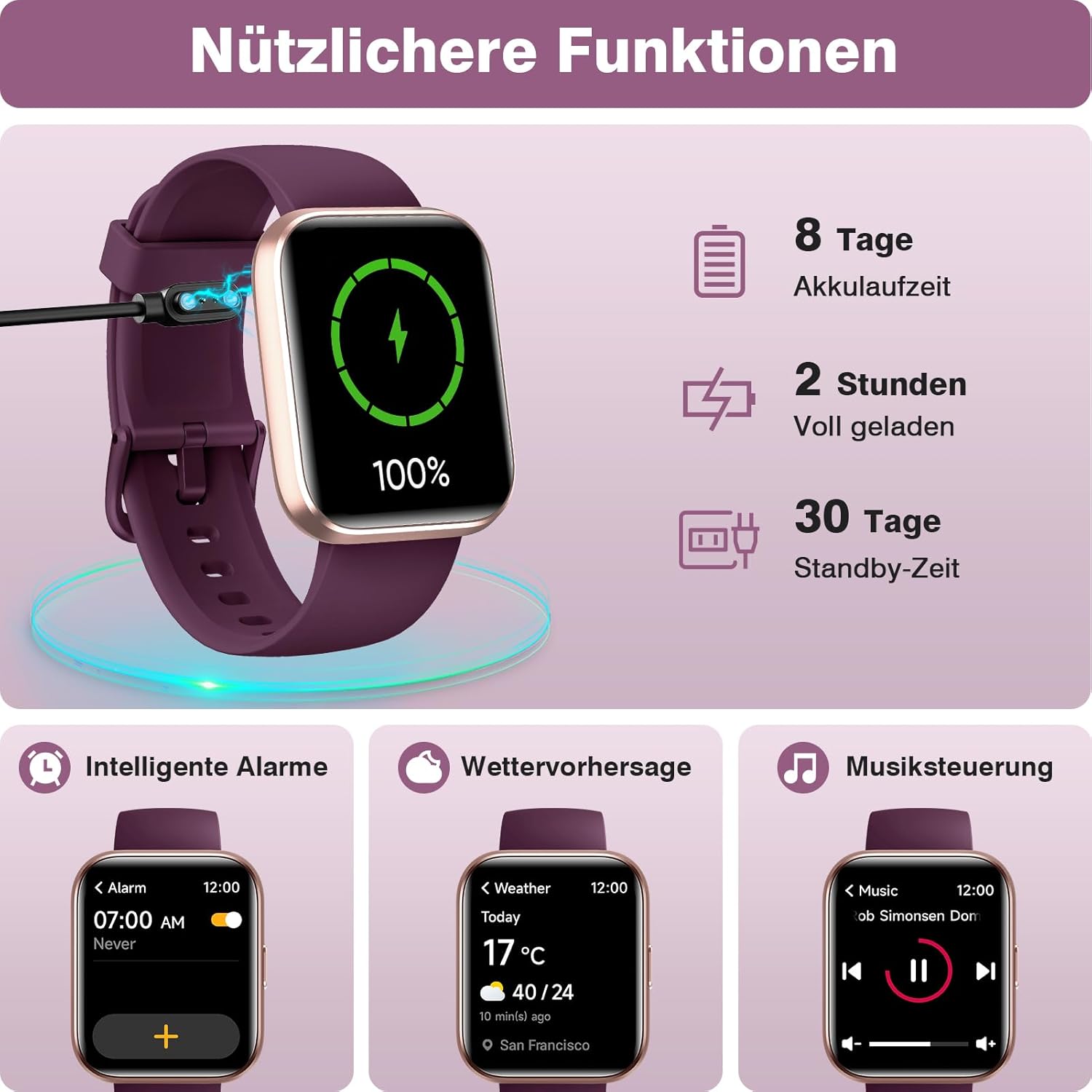 • Long battery life: the pedometer smart watch women's is equipped with 350 mAh battery with large capacity and a Bluetooth low energy chip. Magnetic fast charging, only 2 hours charging time, up to 8-10 days use, 30 days standby, very convenient for business trips or travel. The product warranty extends for a period of 24 months from the date of purchase. If you have a problem, please contact us