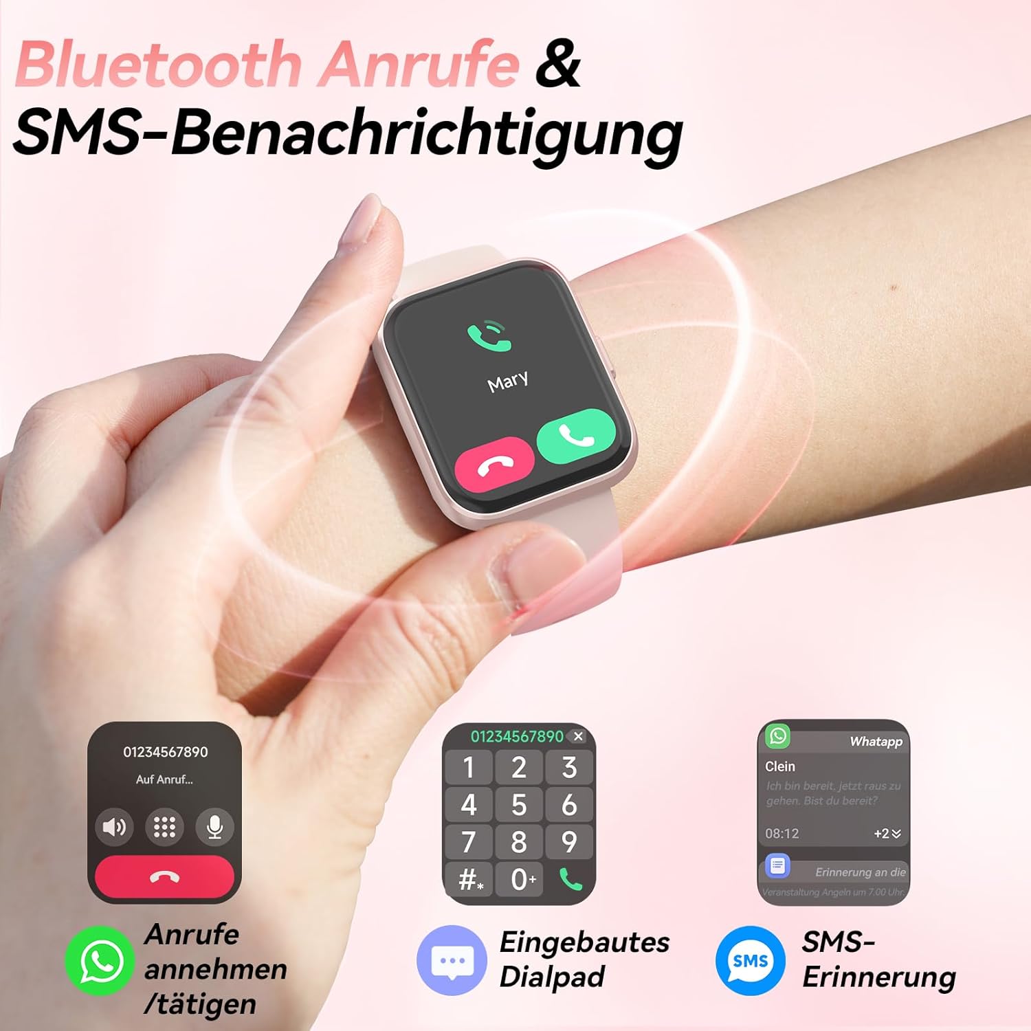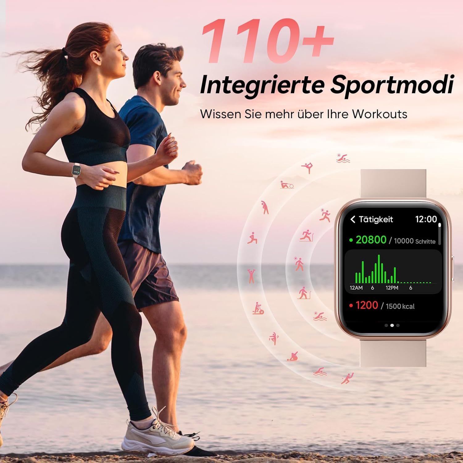 Дамски смарт часовник с функция за телефон, 1.8-инчов фитнес часовник с вградена Alexa и водоустойчивост IP68, 110+ спортни режима, крачкомер с монитор за пулс/сън, смарт часовник за Android и iOS