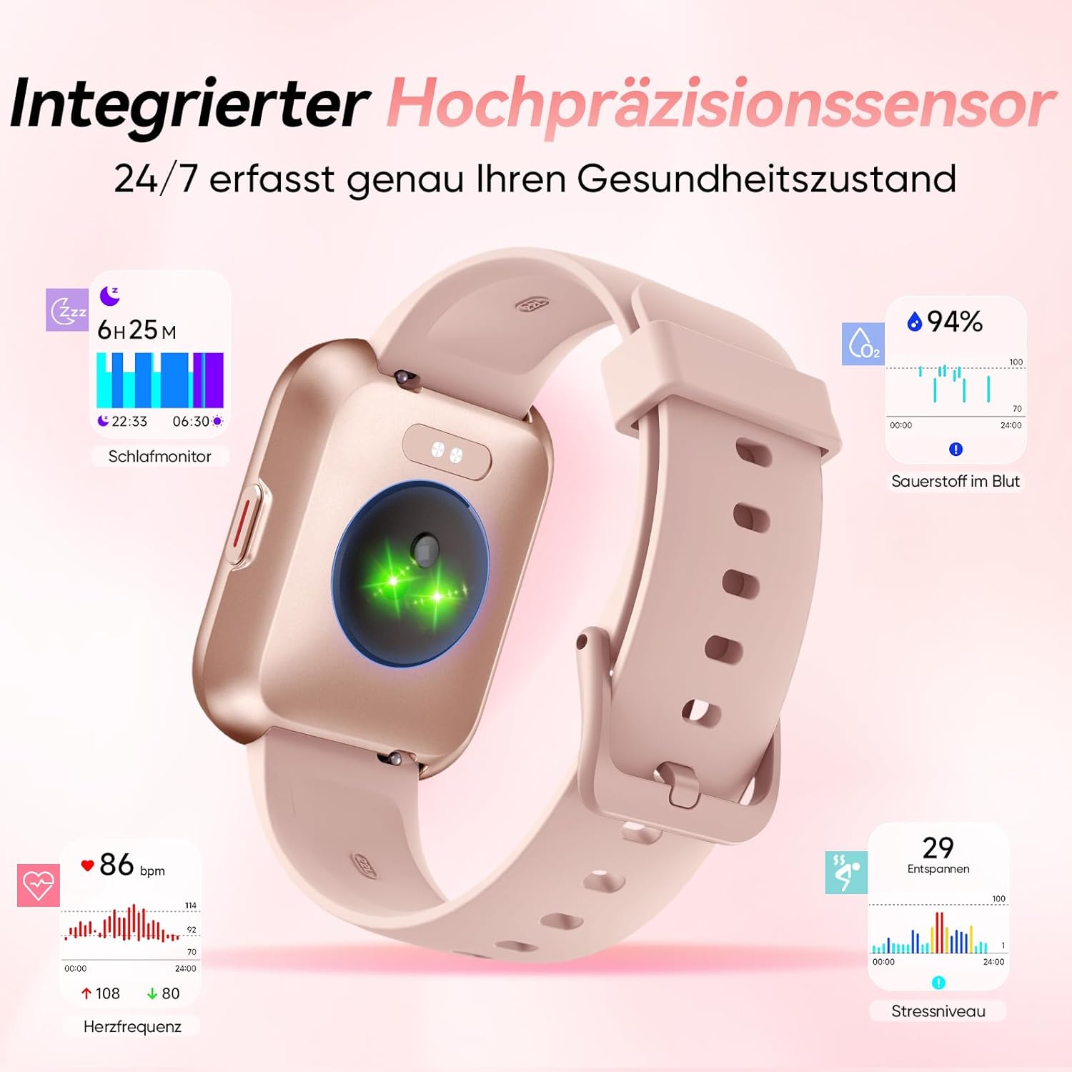 • 24/7 наблюдение на здравето: дамският смарт часовник предлага непрекъснато измерване на вашите здравни показатели 24/7, включително сърдечна честота, стрес, SpO2, анализ на съня (дълбок сън, лек сън, събуждане). Тези данни от мониторинга могат да ви помогнат да следите здравословното си състояние, качеството на съня, както и да ви напомнят за менструалния цикъл на жените.
