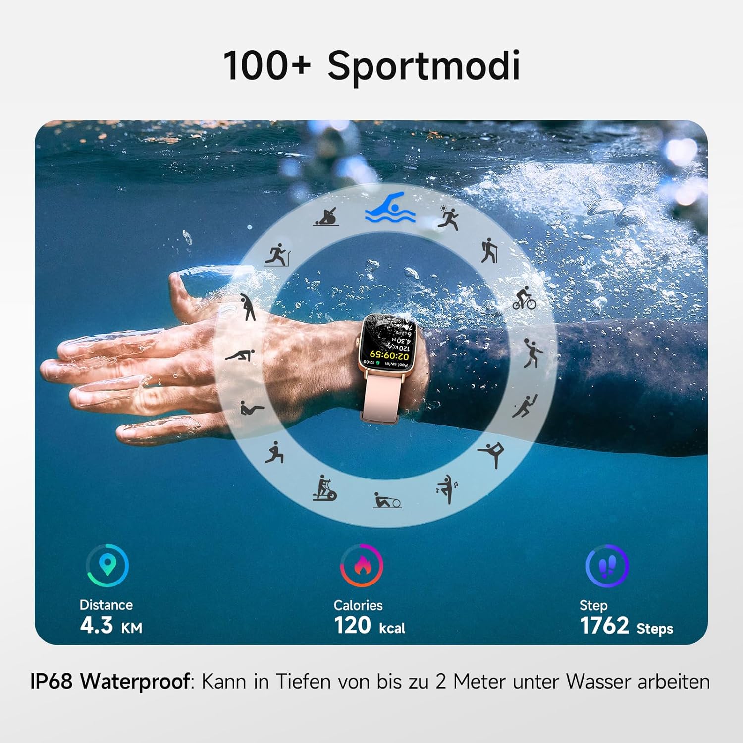• 110+ спортни режима и водоустойчивост IP68: Увеличете тренировките си с над 110 спортни режима, включително бягане, плуване, йога и други. Дамските часовници са водоустойчиви IP68 и не пречат на носенето им дори при плуване или дъжд.