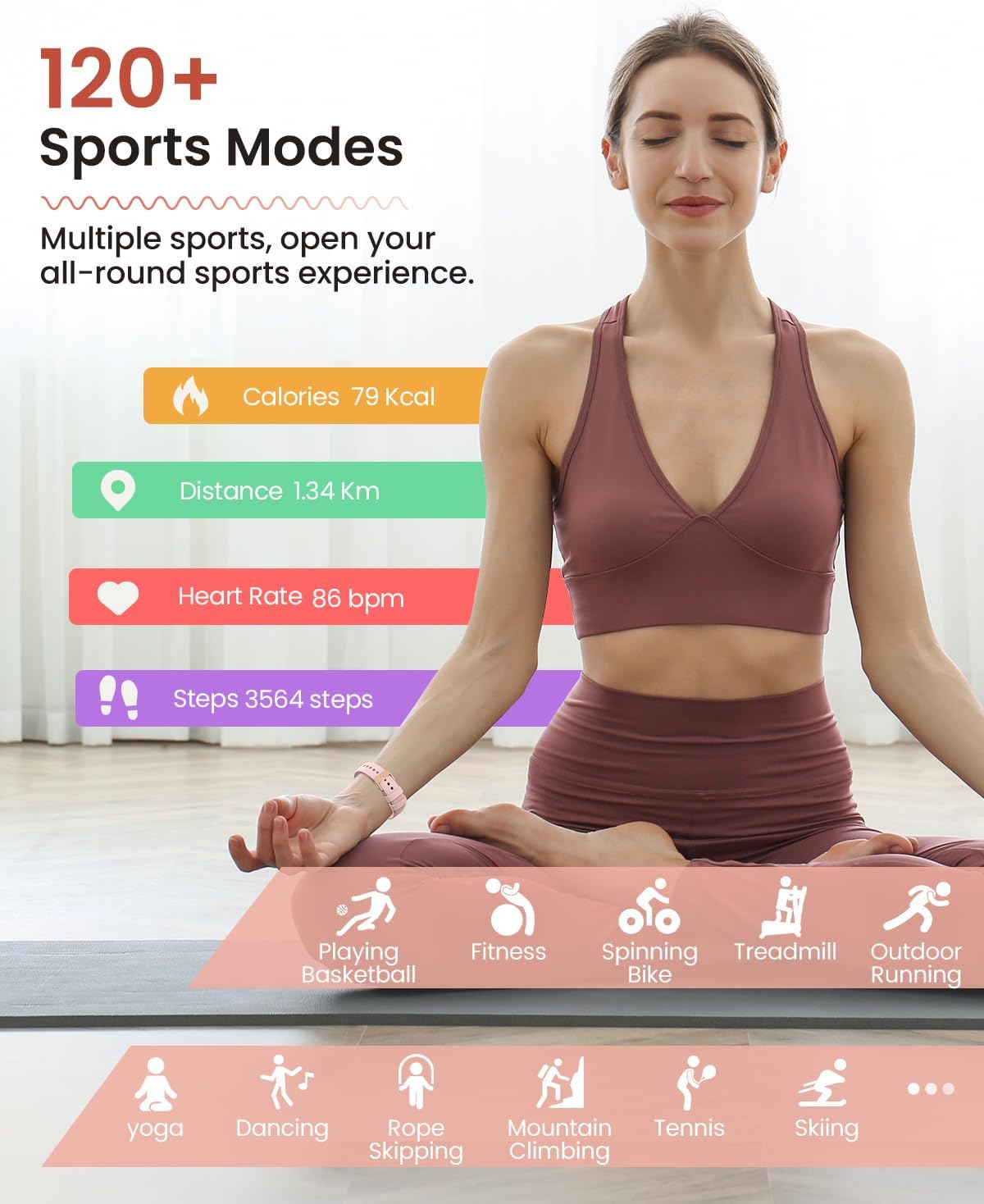 • Над 120 спортни режима - Насладете се на спорта максимално: Дамският кръгъл часовник поддържа повече от 120 спортни режима, включително бягане, йога, тенис и много други спортове, за да отговори на вашите разнообразни фитнес нужди. Благодарение на водоустойчивостта IP68, той е устойчив на пот и дъжд. Независимо дали става въпрос за ежедневни тренировки или спорт на открито, този дамски смарт часовник с функция за телефон ви предоставя прецизни данни за движението и ви подкрепя в постигането на вашите спортни цели.