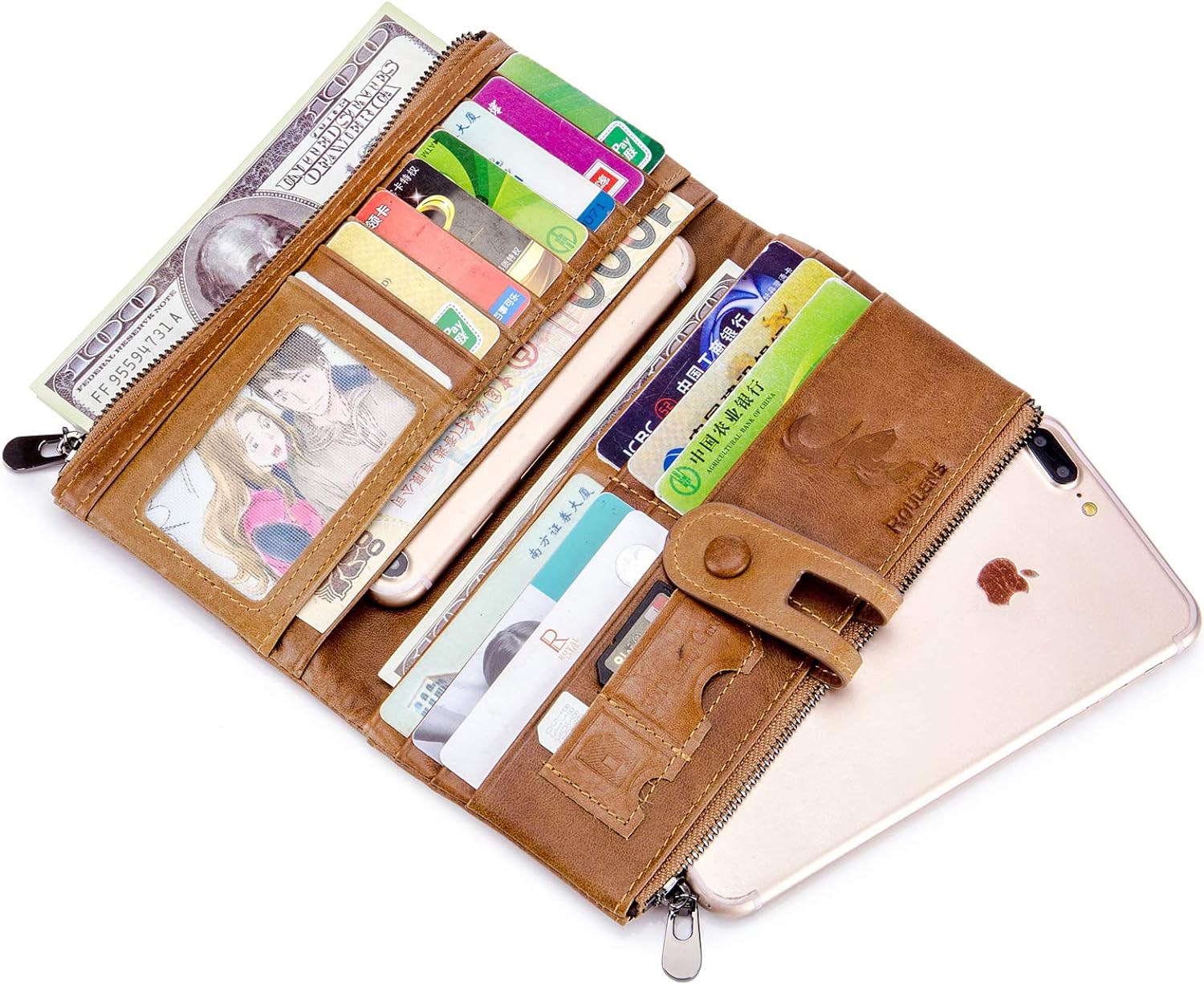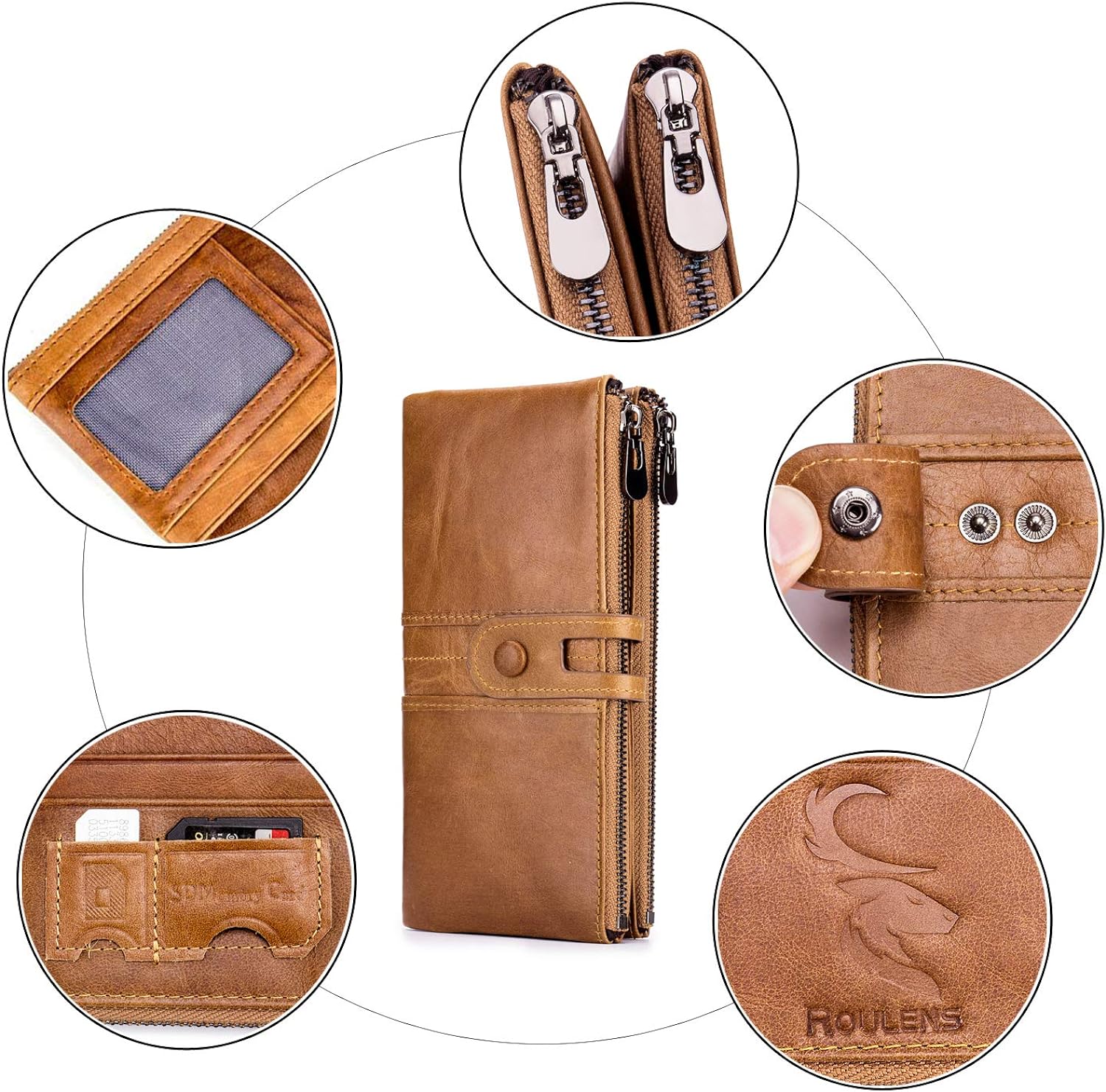 Дамско портмоне Roulens, RFID защита, 13 слотра за карти, 10 x 3 x 19 см, Естествена кожа, Кафяво