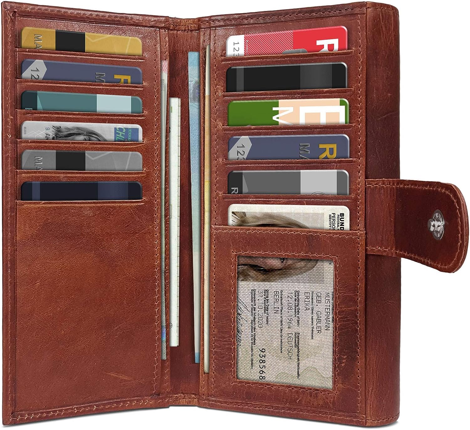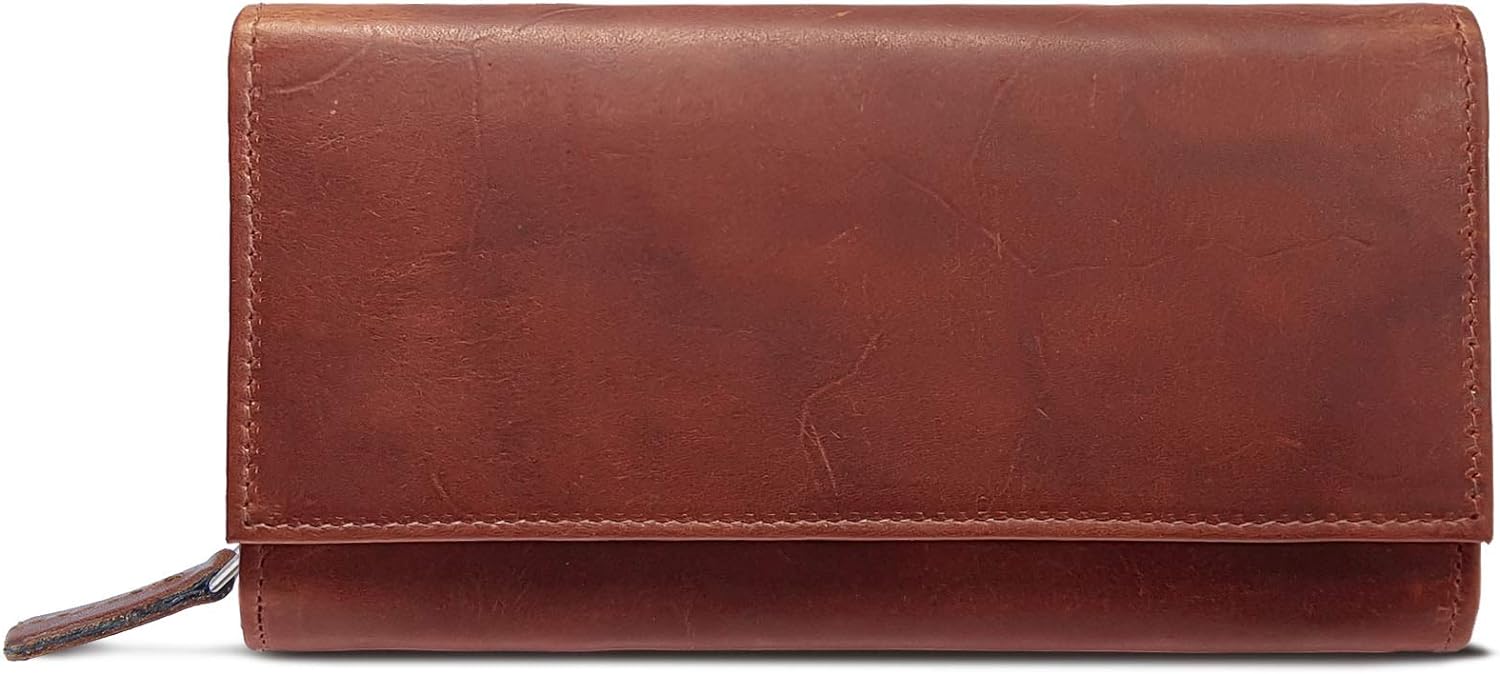 • Просторен голям ретро кожен портфейл за жени с много отделения, включително RFID блокер.