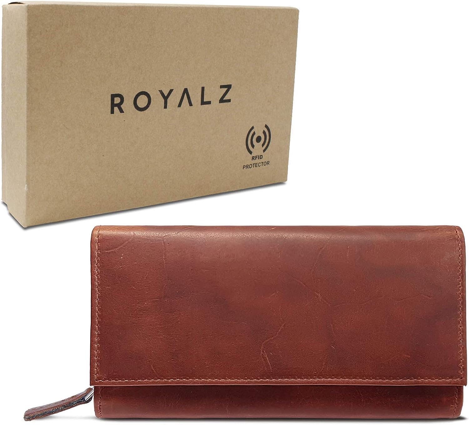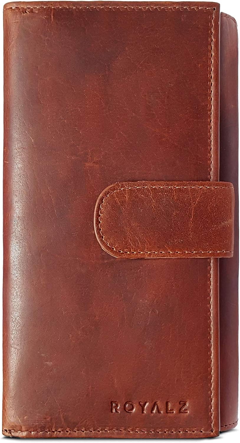 Дамско портмоне Royalz, Ретро дизайн, RFID защида, Много отделения, 17 х 9 х 4 см, Естествена кожа, Кафяво