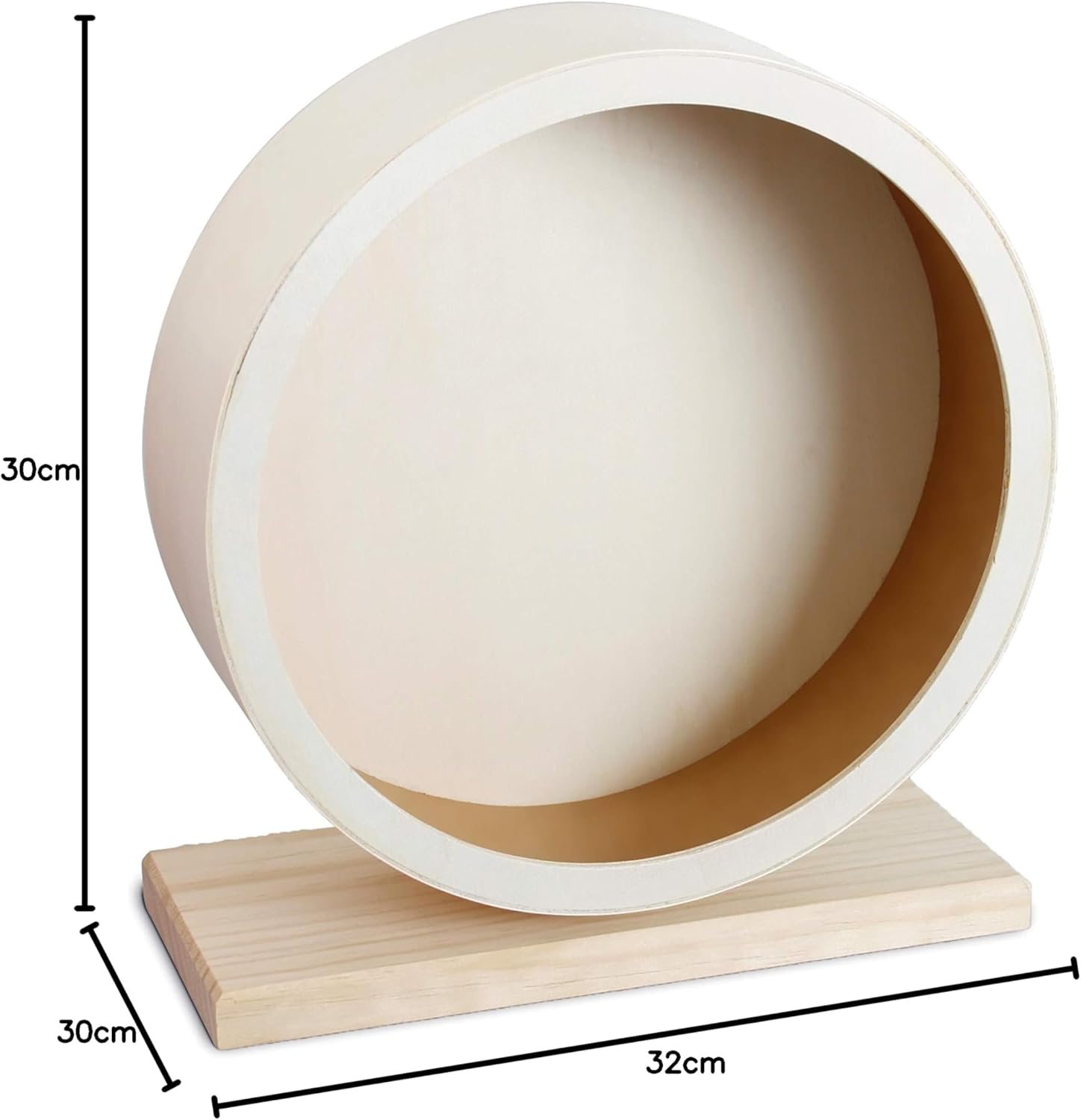 Дървено колело за гризачи, изработено от необработена естествена дървесина, гладко и тихо, ергономично, със затворен заден панел и протектор, диаметър 30 см.