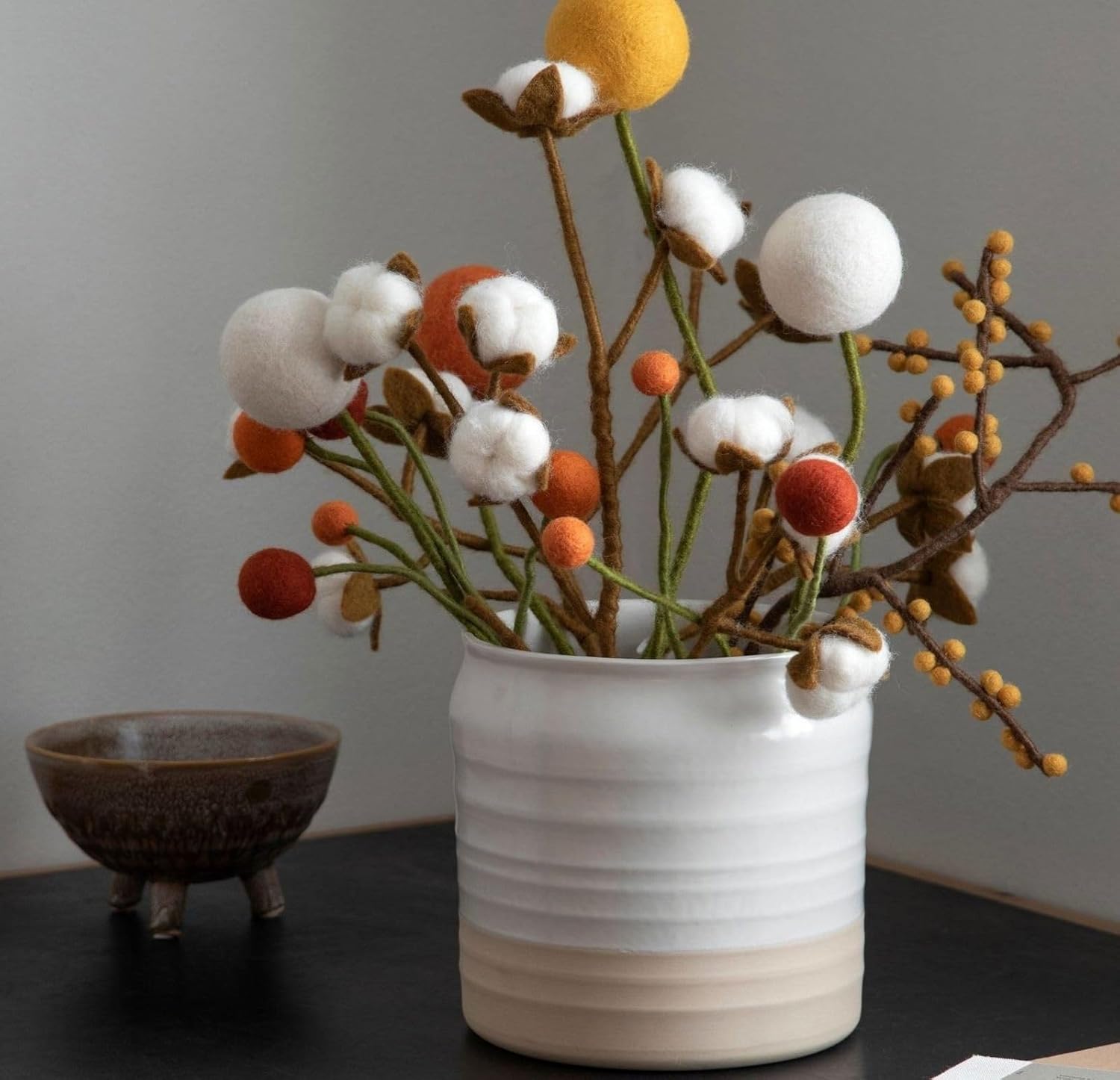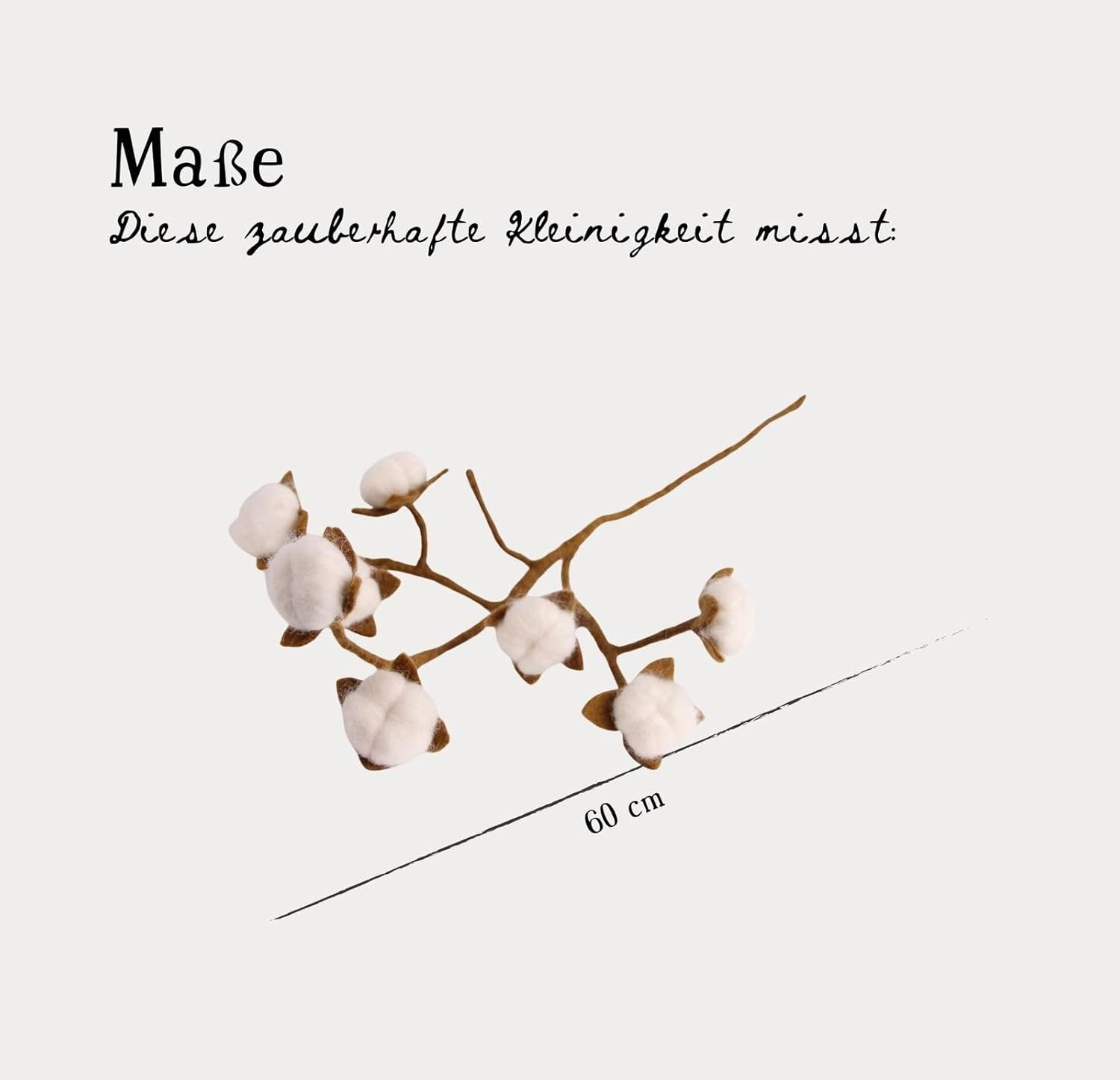 Декоративна клонка за ваза Én Gry & Sif, памучна клонка Scandi, ръчно изработена от естествен филц, честна търговия, памучни цветя, 1 x 60 см