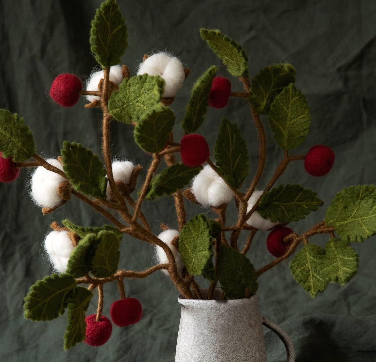 Тези красиви клонки могат да се използват за създаване на страхотни декоративни акценти. Вечни, устойчиви и просто красиви. Във ваза с чудесен медальон, изработен от филц, всичко е най-добре завършено. Продуктите на Gry & Sif са ръчно изработени в Непал от новозеландска вълна, при справедливи условия на труд. Gry & Sif подкрепя непалските жени да си осигуряват прехраната.