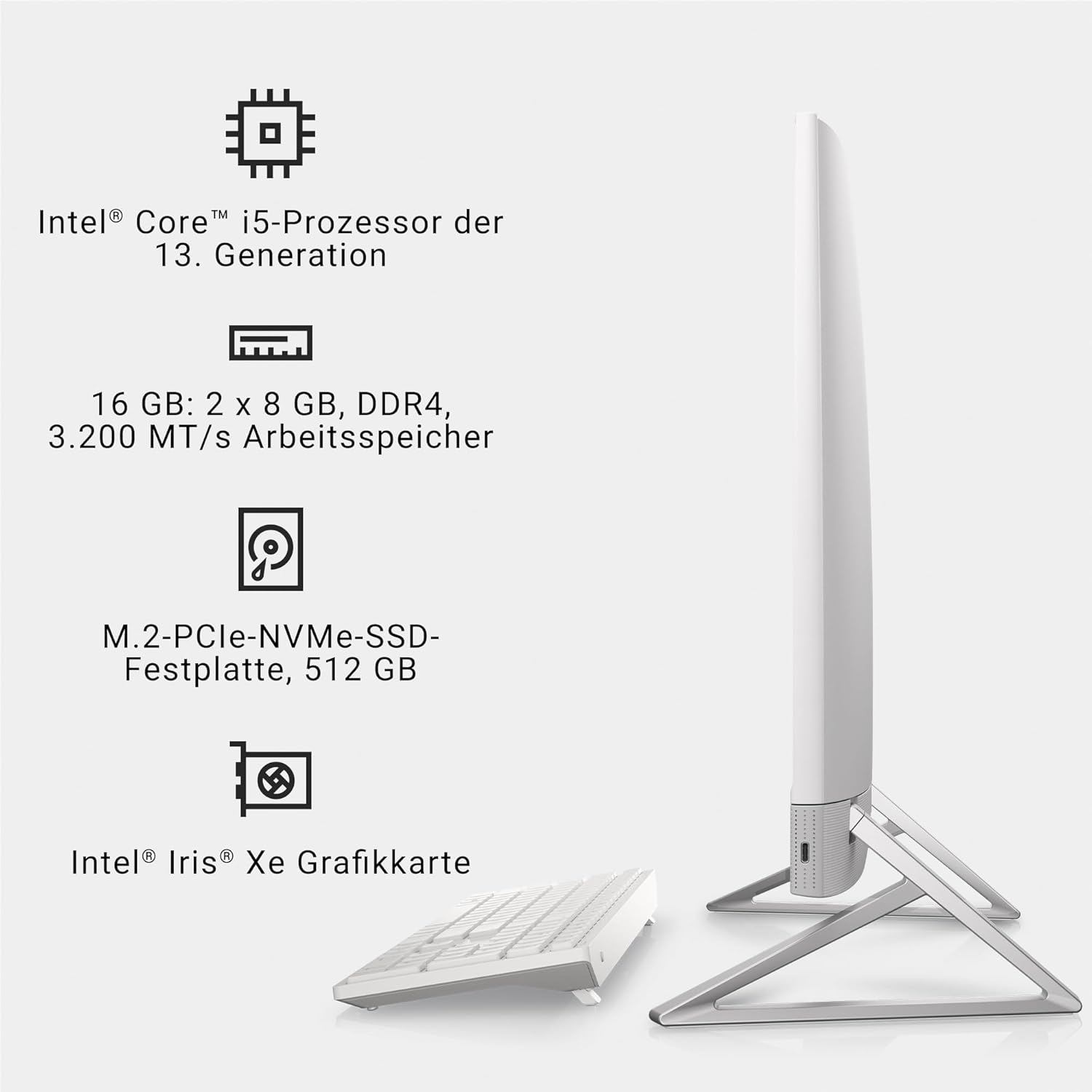 Dell Inspiron 7730 All-In-One 27 FHD дисплей, Intel Core i5-1334U, 16GB DDR4 RAM, 512GB SSD, Intel Iris Xe Graphics, Windows 11 Home - бял капак