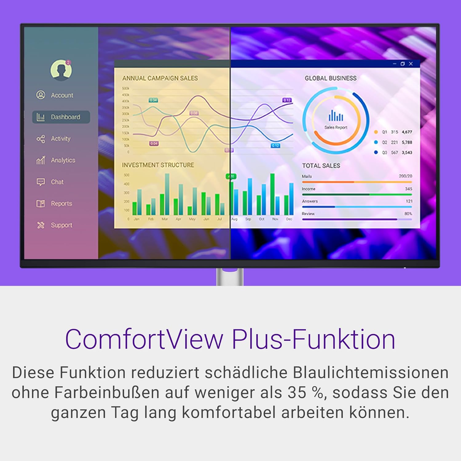 • Тази функция намалява вредните емисии на синя светлина до по-малко от 35%, без да прави компромис с цветовете, така че можете да работите комфортно през целия ден.