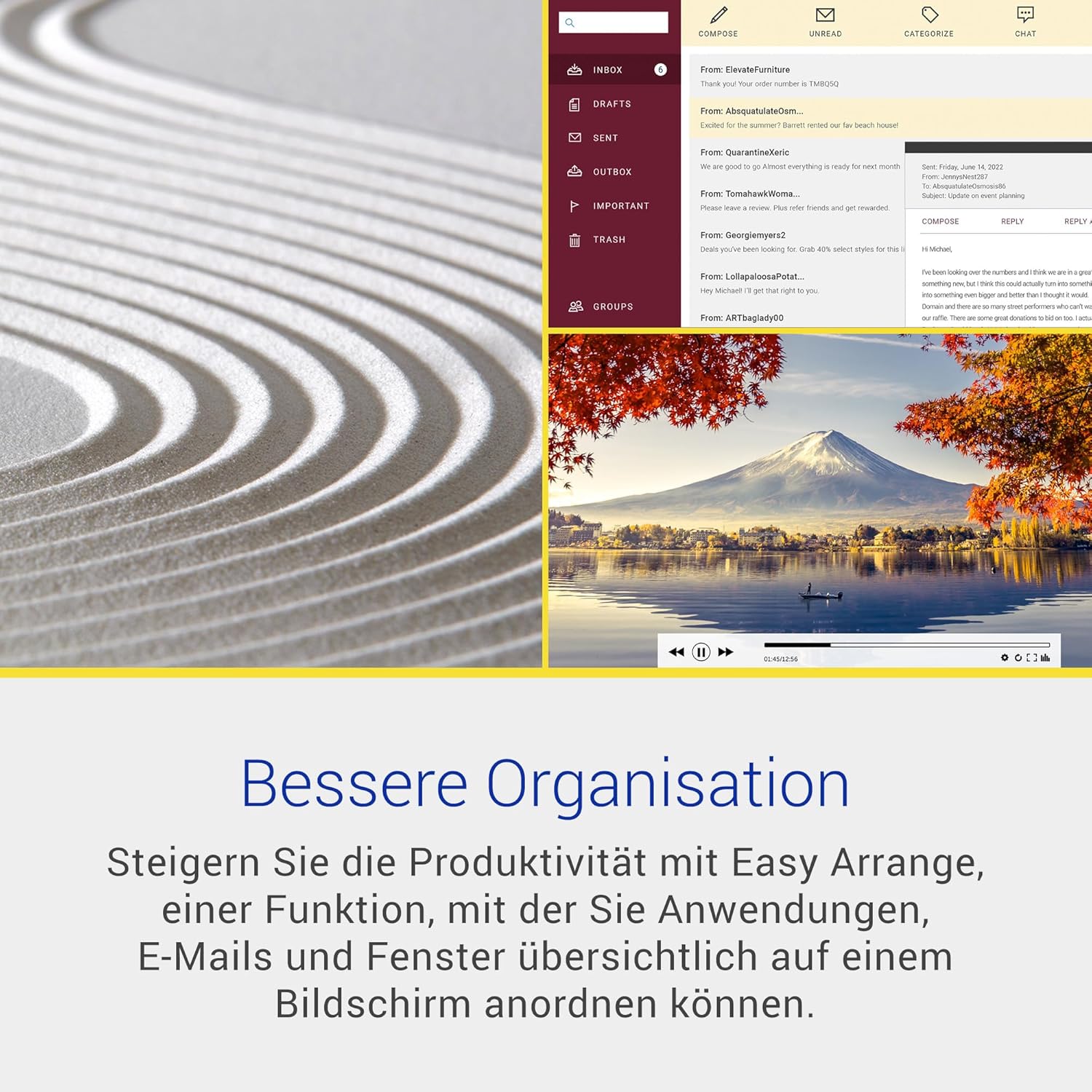 • ТОЧНОСТ НА ЯРКИТЕ ЦВЕТОВЕ: 99% sRGB цветово покритие и над 1 милиард цвята с контрастно съотношение 1500:1 за зашеметяващи детайли.